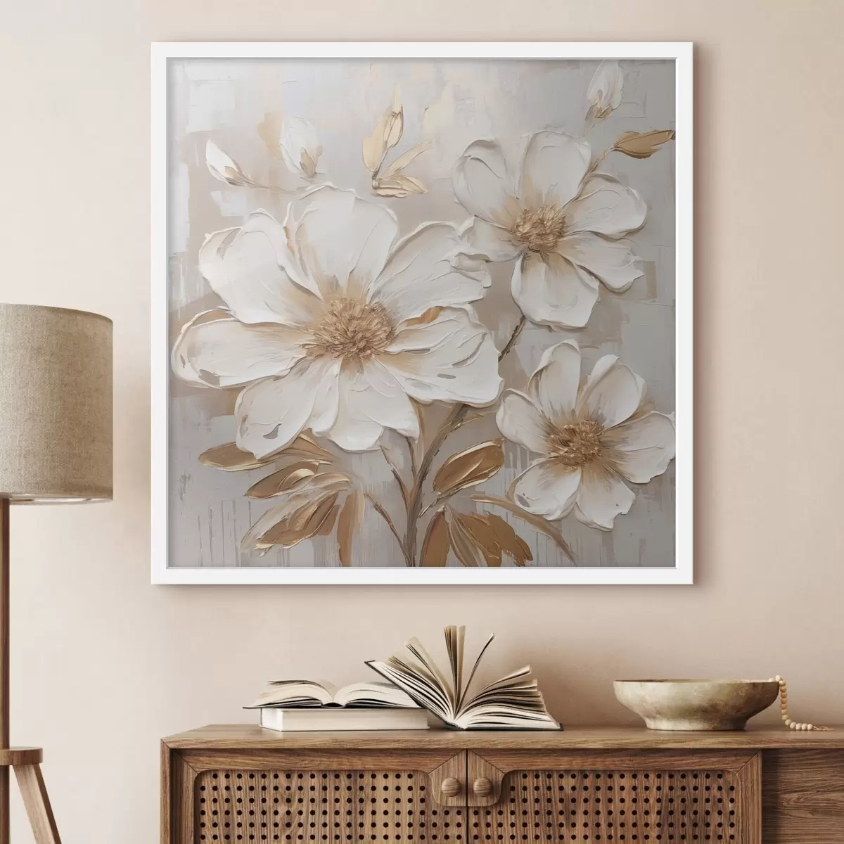 Poster Fleurs texturées sur fond clair aux nuances chaudes Nr f46166