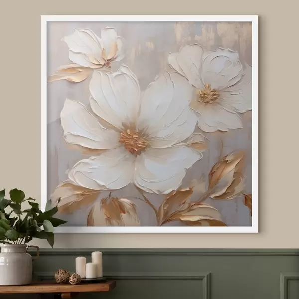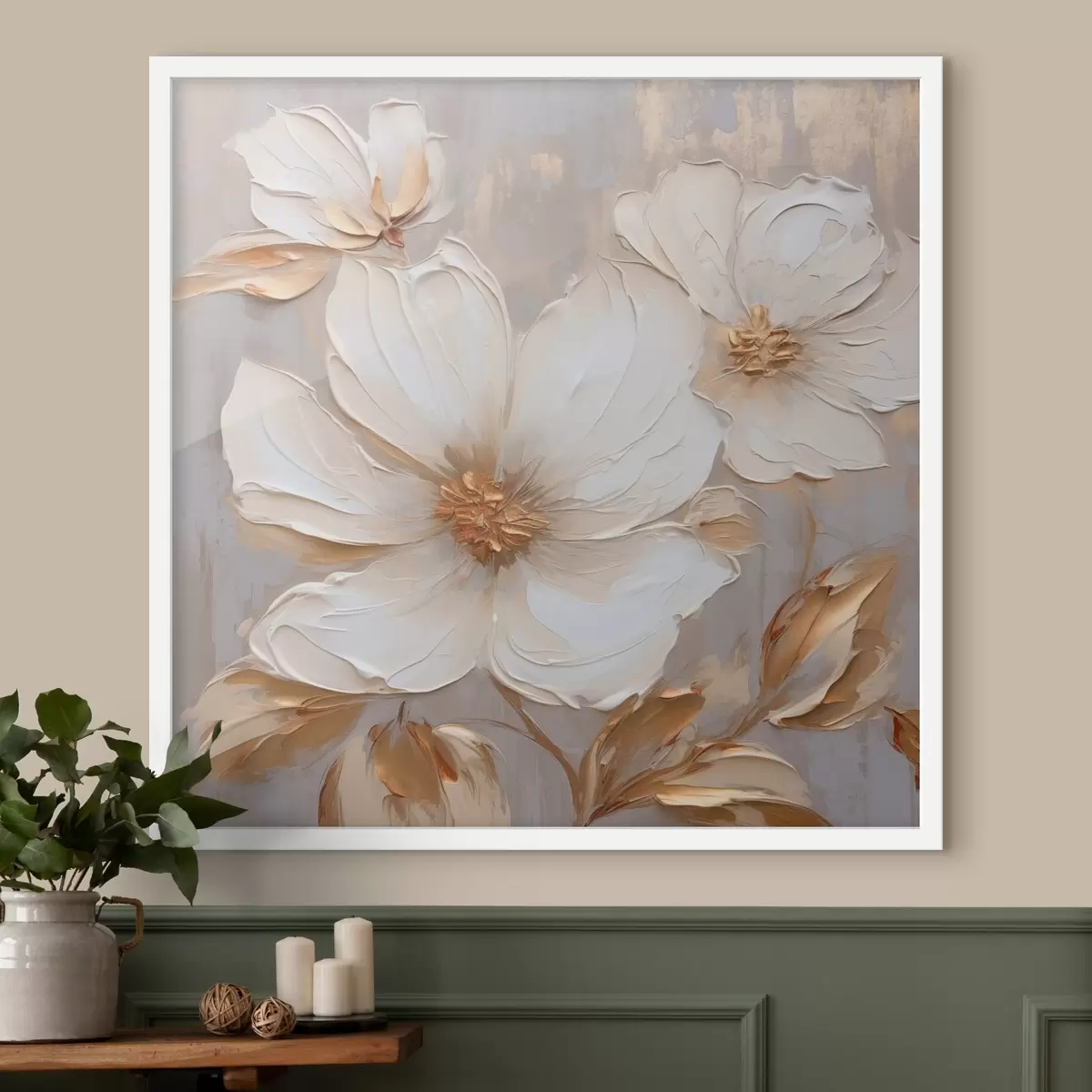 Poster Grandes fleurs texturées avec des coups de pinceau dans une palette de couleurs chaudes Nr f46176