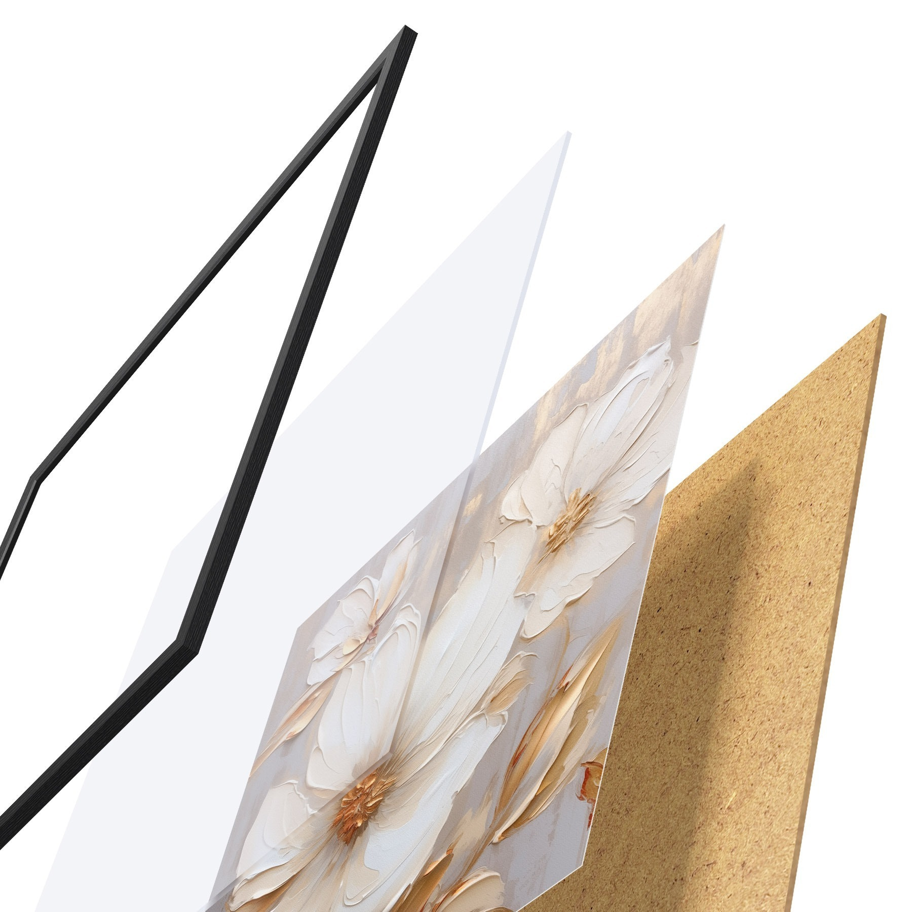 L’affiche encadrée est composée d’un cadre, d’un plexiglas, d’une image imprimée et d’un support en aggloméré. Elle est prête à être accrochée au mur grâce aux fixations situées à l’arrière.