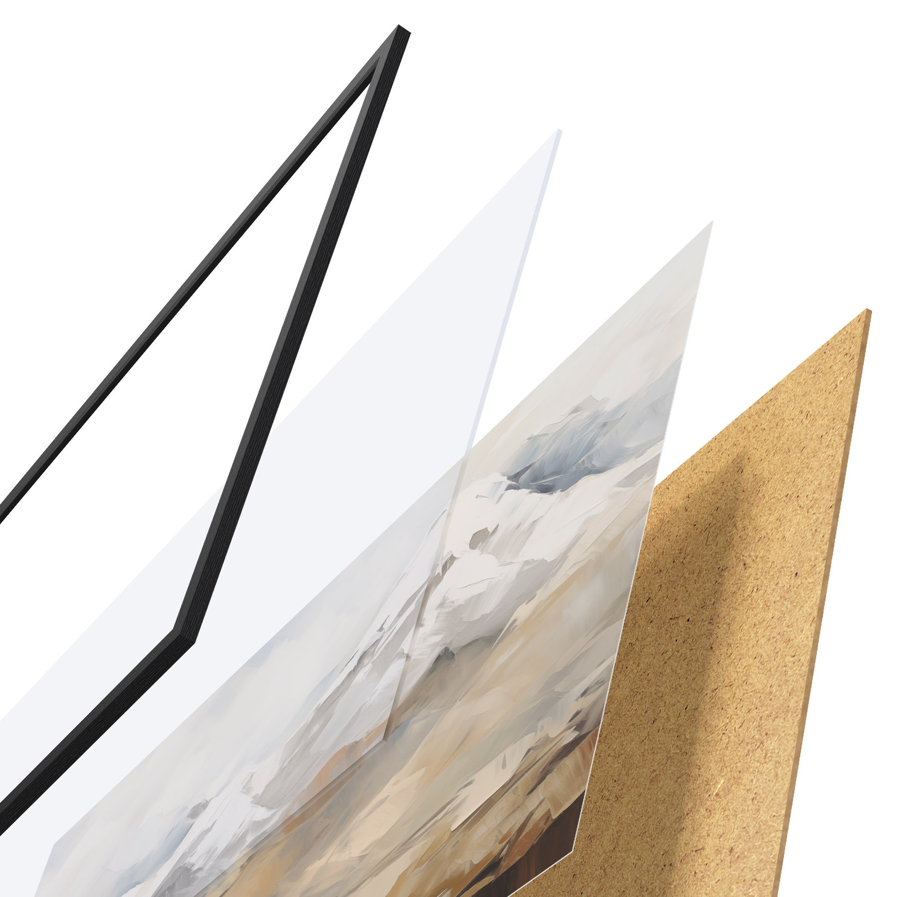 L’affiche encadrée est composée d’un cadre, d’un plexiglas, d’une image imprimée et d’un support en aggloméré. Elle est prête à être accrochée au mur grâce aux fixations situées à l’arrière.