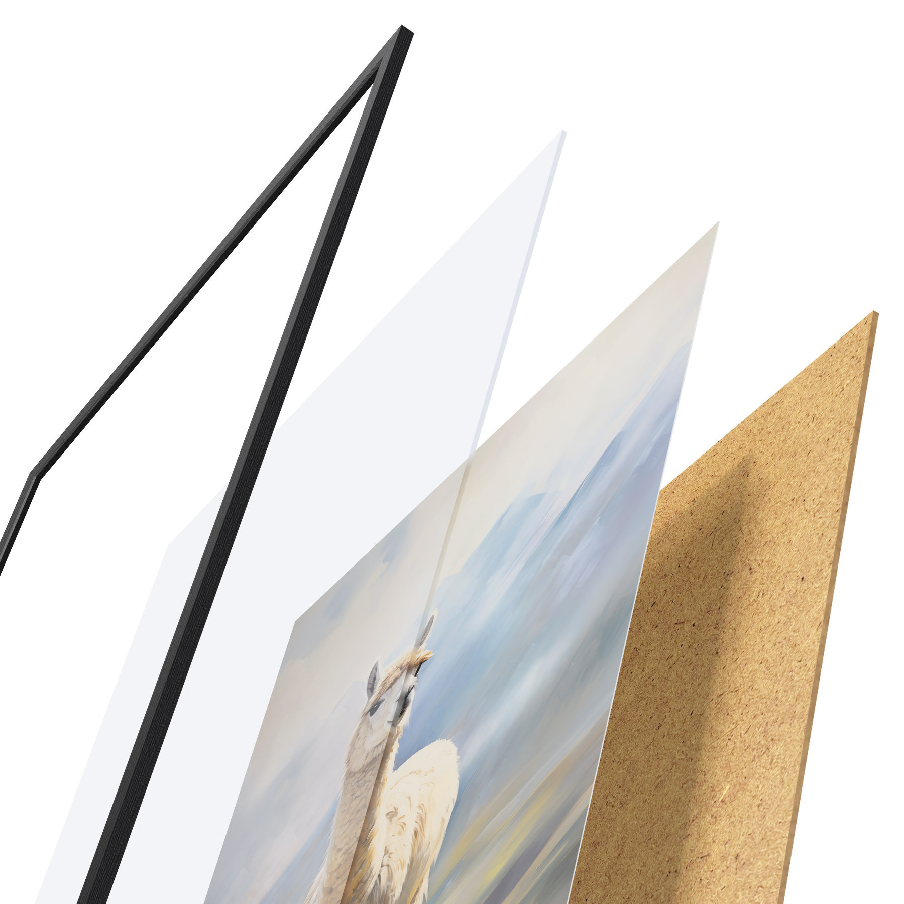 L’affiche encadrée est composée d’un cadre, d’un plexiglas, d’une image imprimée et d’un support en aggloméré. Elle est prête à être accrochée au mur grâce aux fixations situées à l’arrière.