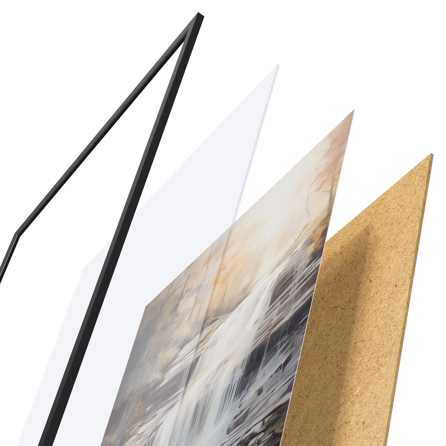 L’affiche encadrée est composée d’un cadre, d’un plexiglas, d’une image imprimée et d’un support en aggloméré. Elle est prête à être accrochée au mur grâce aux fixations situées à l’arrière.