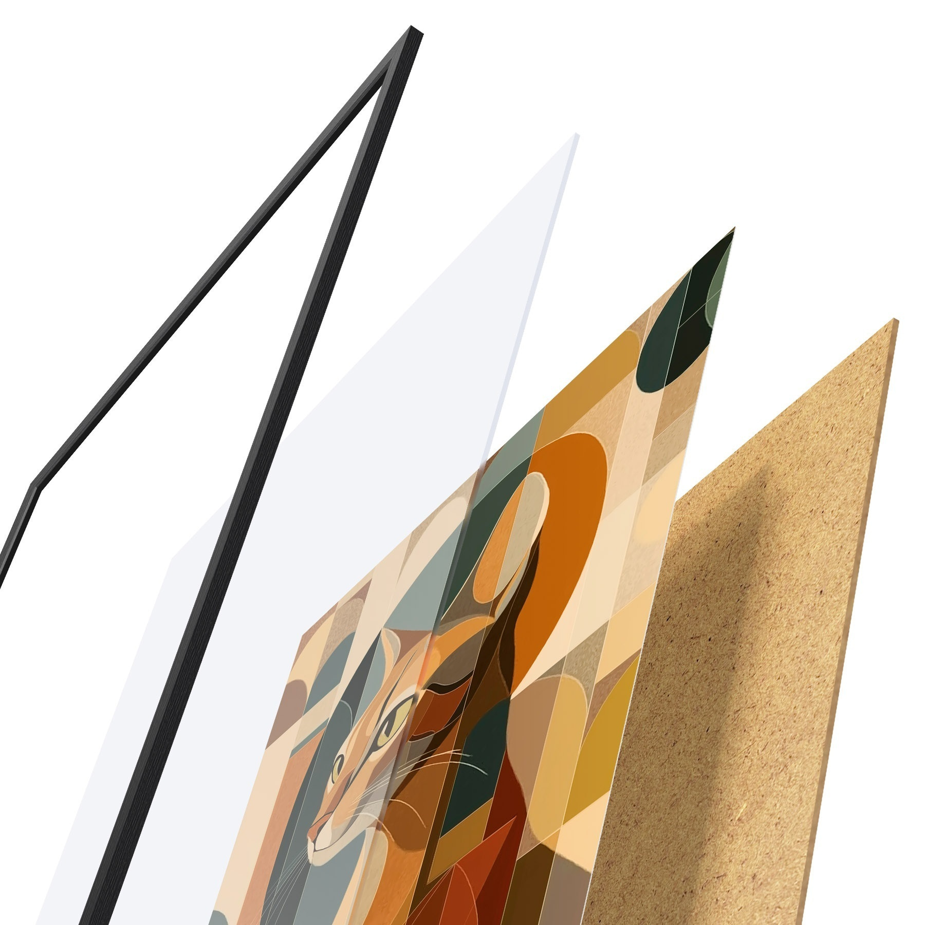 L’affiche encadrée est composée d’un cadre, d’un plexiglas, d’une image imprimée et d’un support en aggloméré. Elle est prête à être accrochée au mur grâce aux fixations situées à l’arrière.