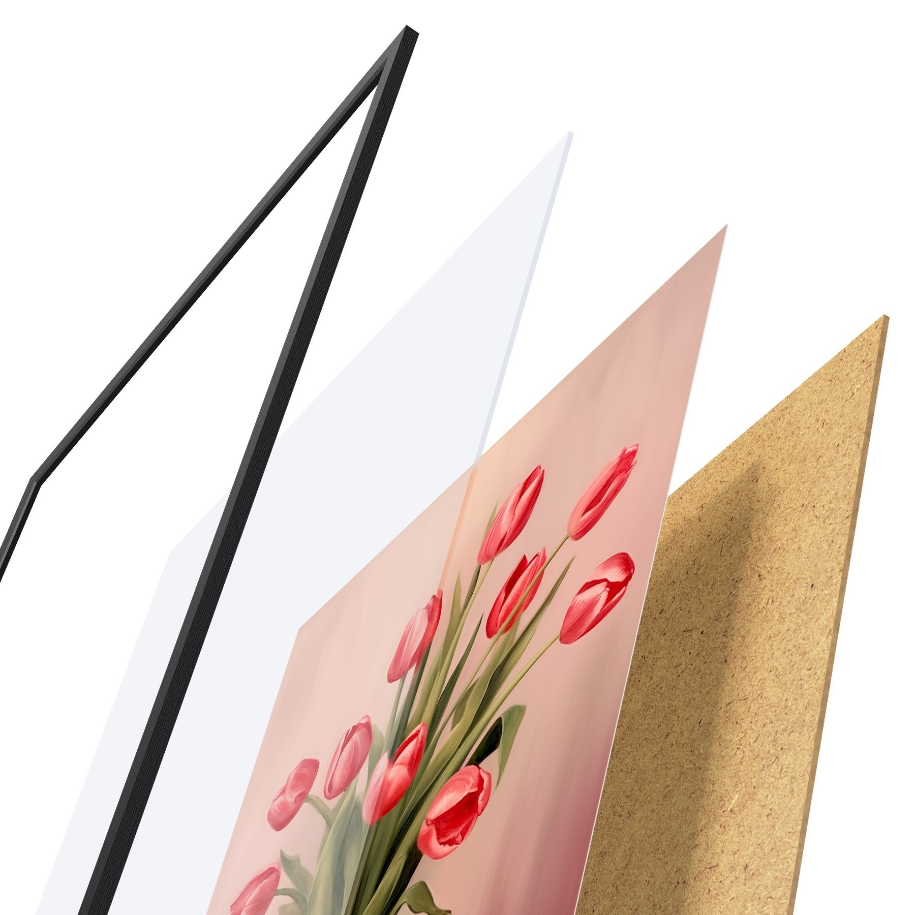 L’affiche encadrée est composée d’un cadre, d’un plexiglas, d’une image imprimée et d’un support en aggloméré. Elle est prête à être accrochée au mur grâce aux fixations situées à l’arrière.