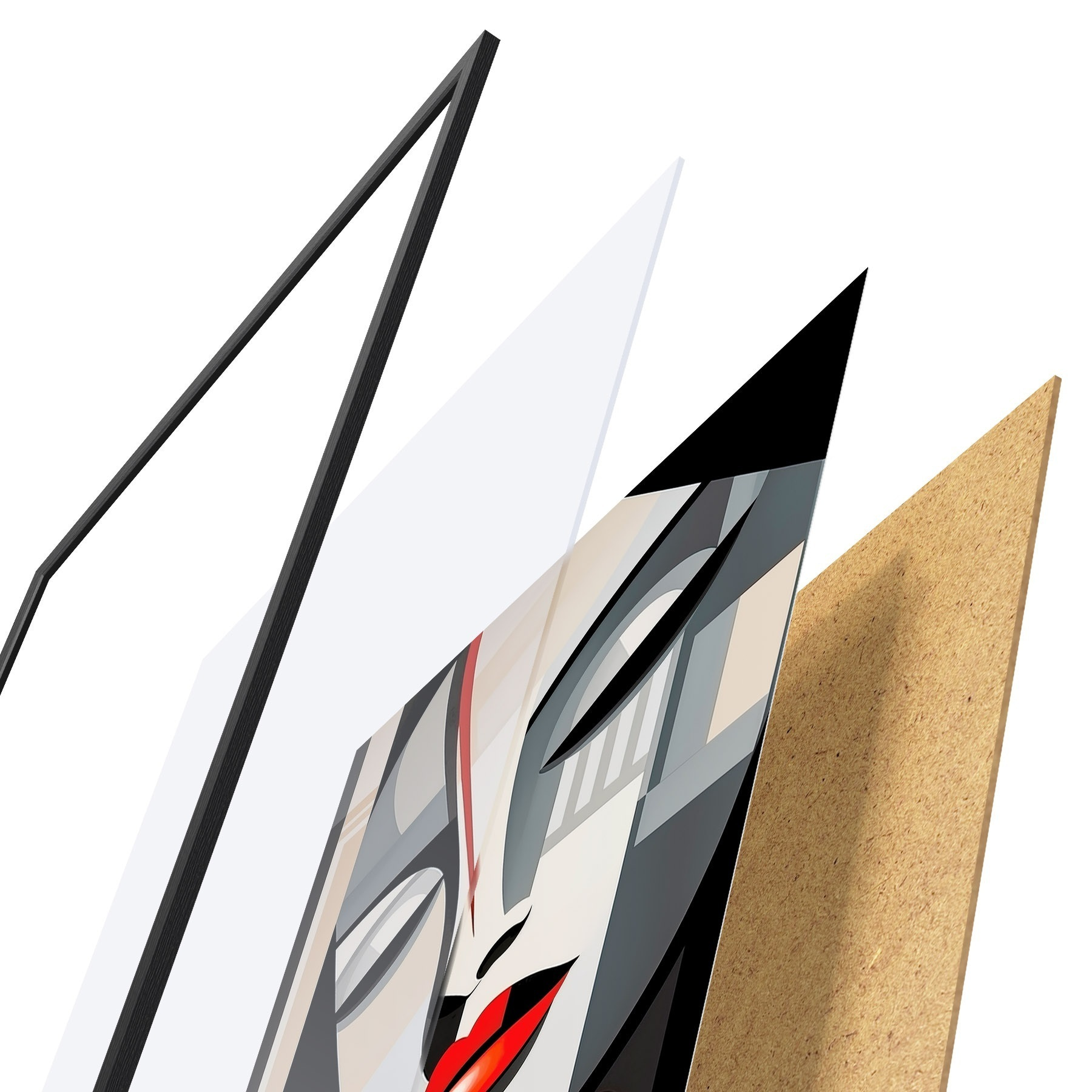 L’affiche encadrée est composée d’un cadre, d’un plexiglas, d’une image imprimée et d’un support en aggloméré. Elle est prête à être accrochée au mur grâce aux fixations situées à l’arrière.