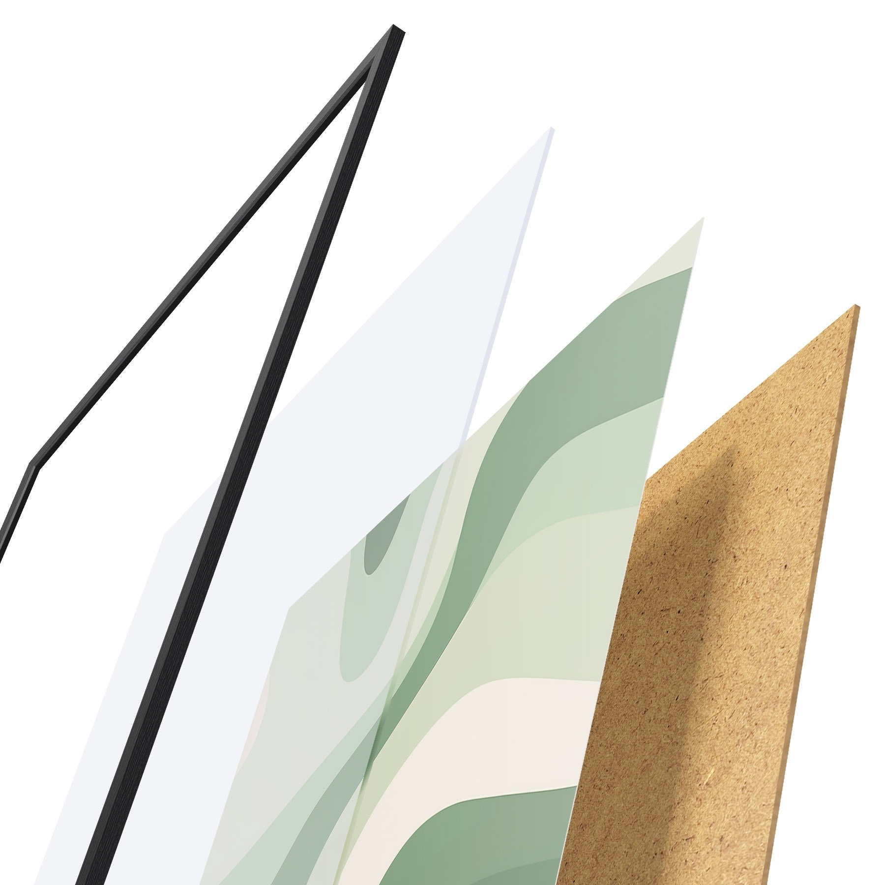 L’affiche encadrée est composée d’un cadre, d’un plexiglas, d’une image imprimée et d’un support en aggloméré. Elle est prête à être accrochée au mur grâce aux fixations situées à l’arrière.