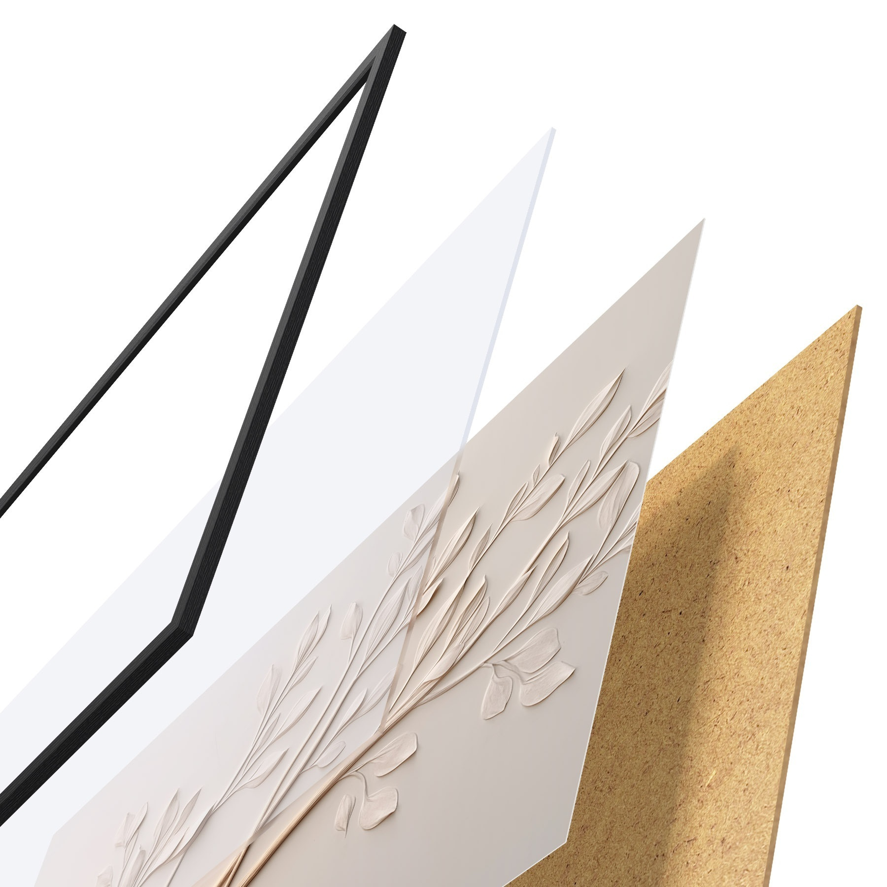L’affiche encadrée est composée d’un cadre, d’un plexiglas, d’une image imprimée et d’un support en aggloméré. Elle est prête à être accrochée au mur grâce aux fixations situées à l’arrière.