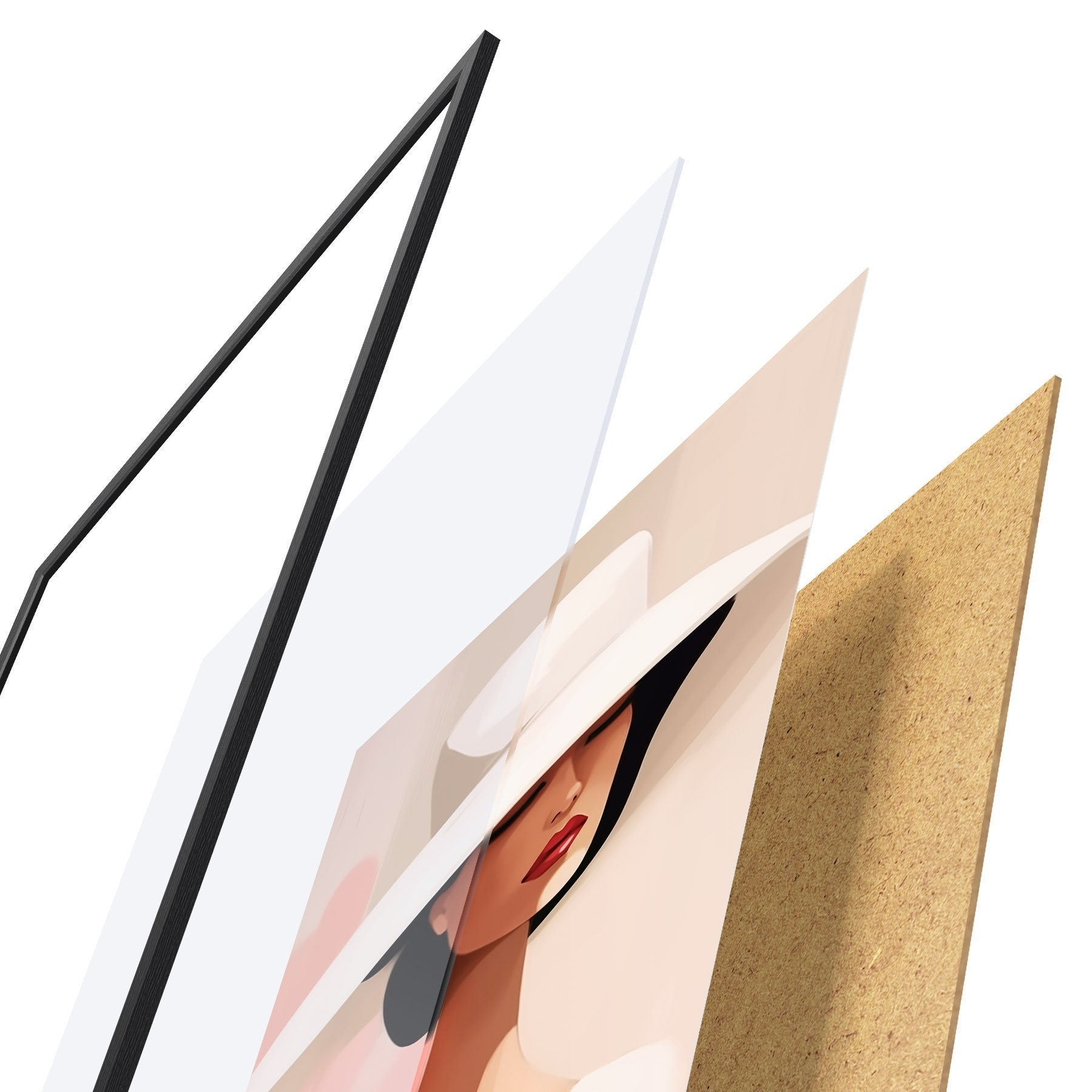 L’affiche encadrée est composée d’un cadre, d’un plexiglas, d’une image imprimée et d’un support en aggloméré. Elle est prête à être accrochée au mur grâce aux fixations situées à l’arrière.