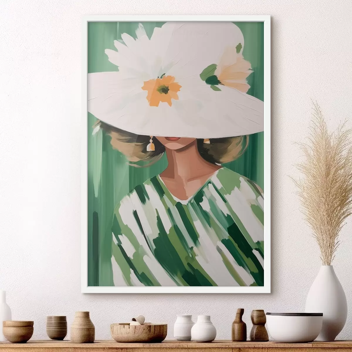 Poster Femme au chapeau et aux fleurs Nr f46240