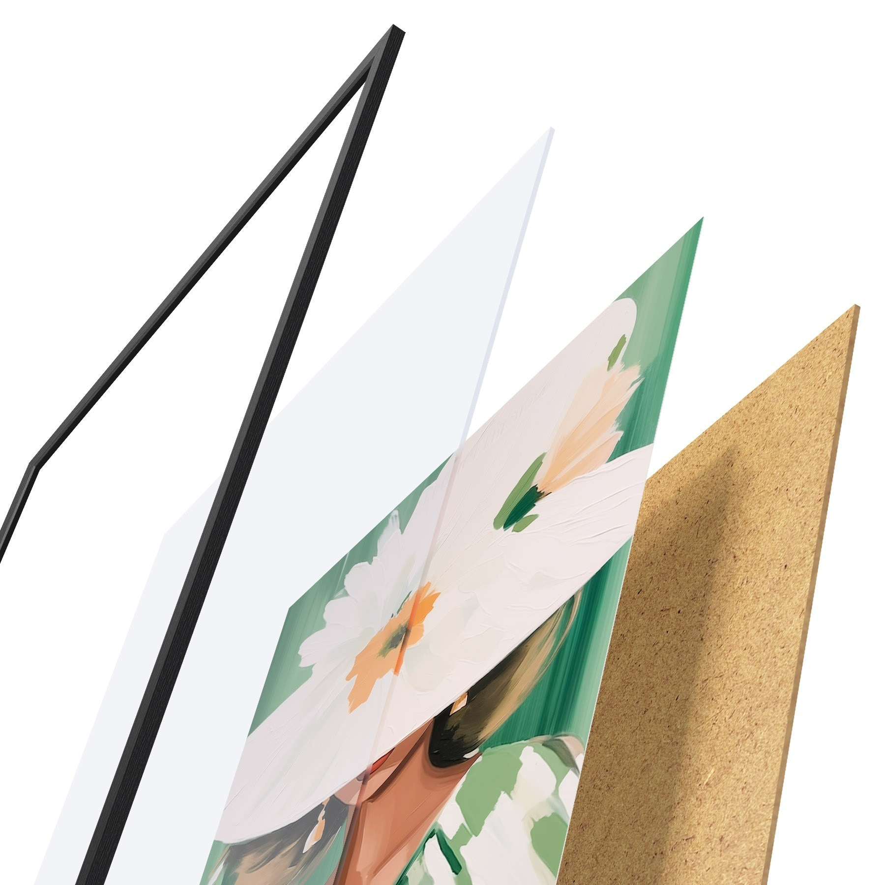 L’affiche encadrée est composée d’un cadre, d’un plexiglas, d’une image imprimée et d’un support en aggloméré. Elle est prête à être accrochée au mur grâce aux fixations situées à l’arrière.