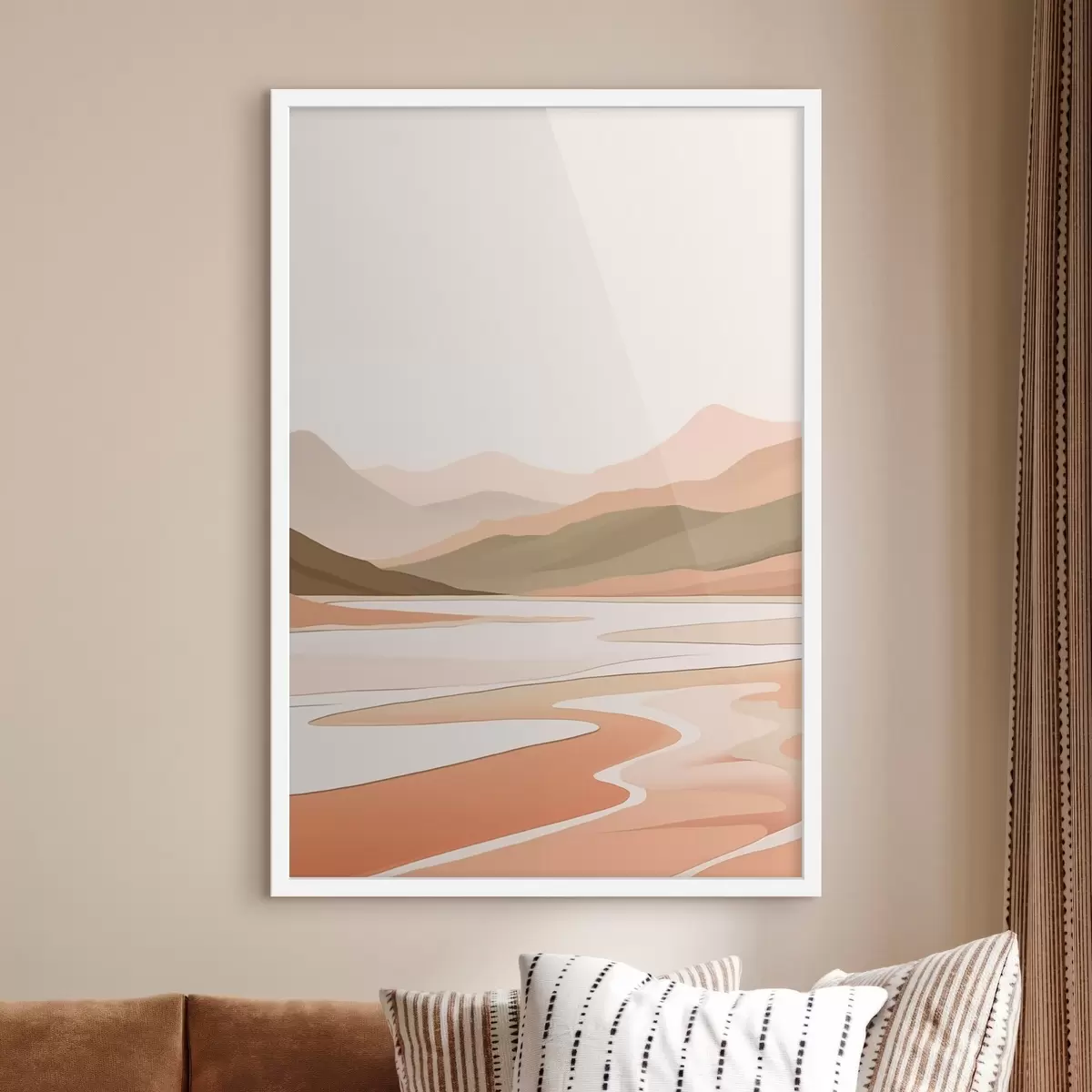 Poster Paysage abstrait avec montagnes et rivière Nr f46249