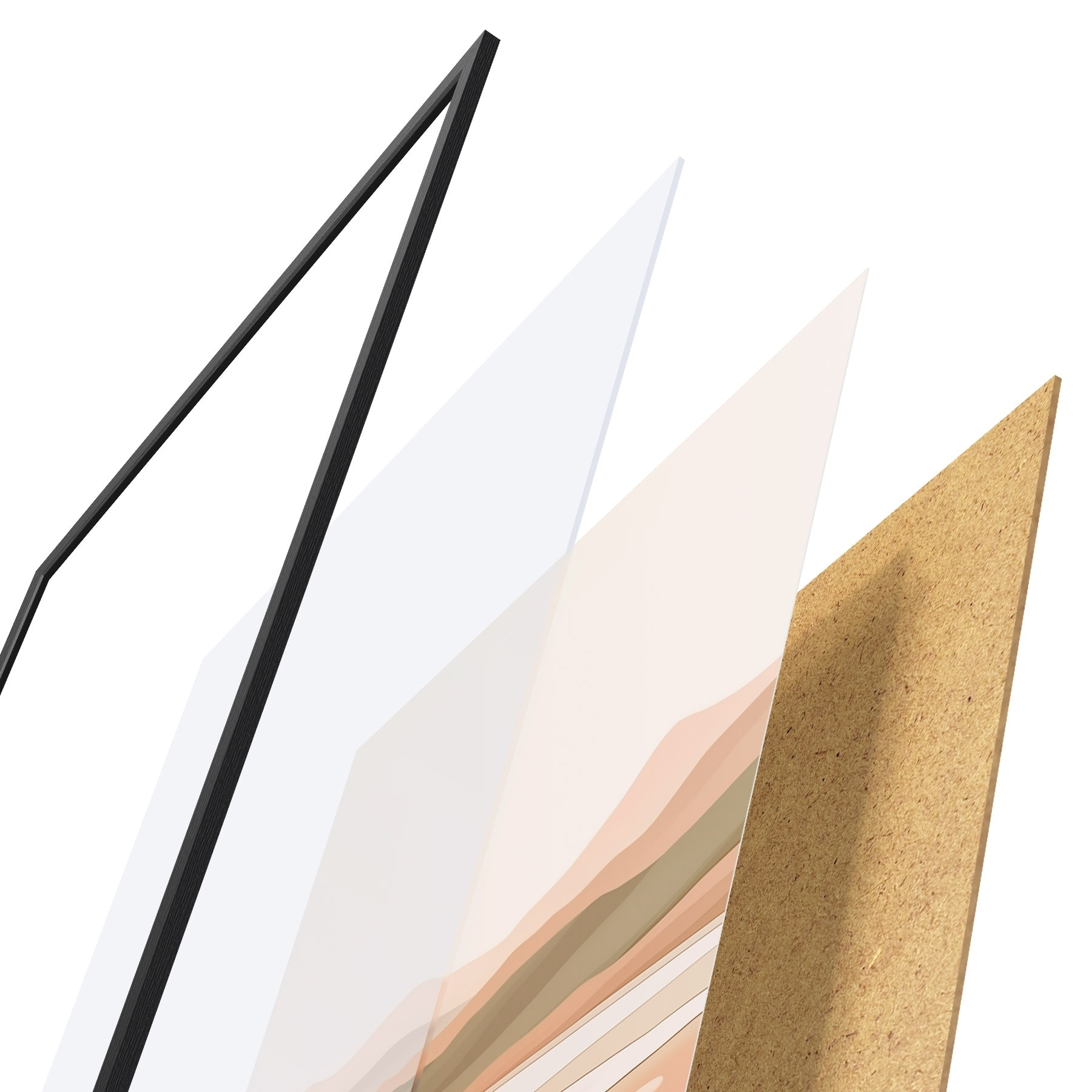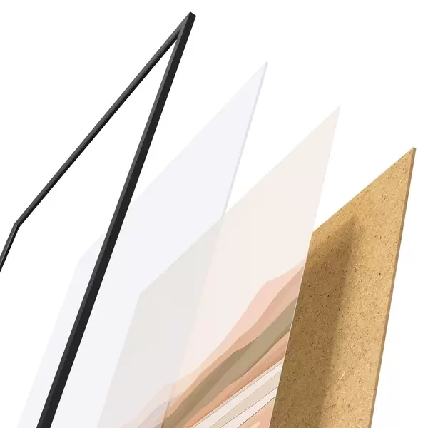 L’affiche encadrée est composée d’un cadre, d’un plexiglas, d’une image imprimée et d’un support en aggloméré. Elle est prête à être accrochée au mur grâce aux fixations situées à l’arrière.