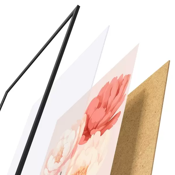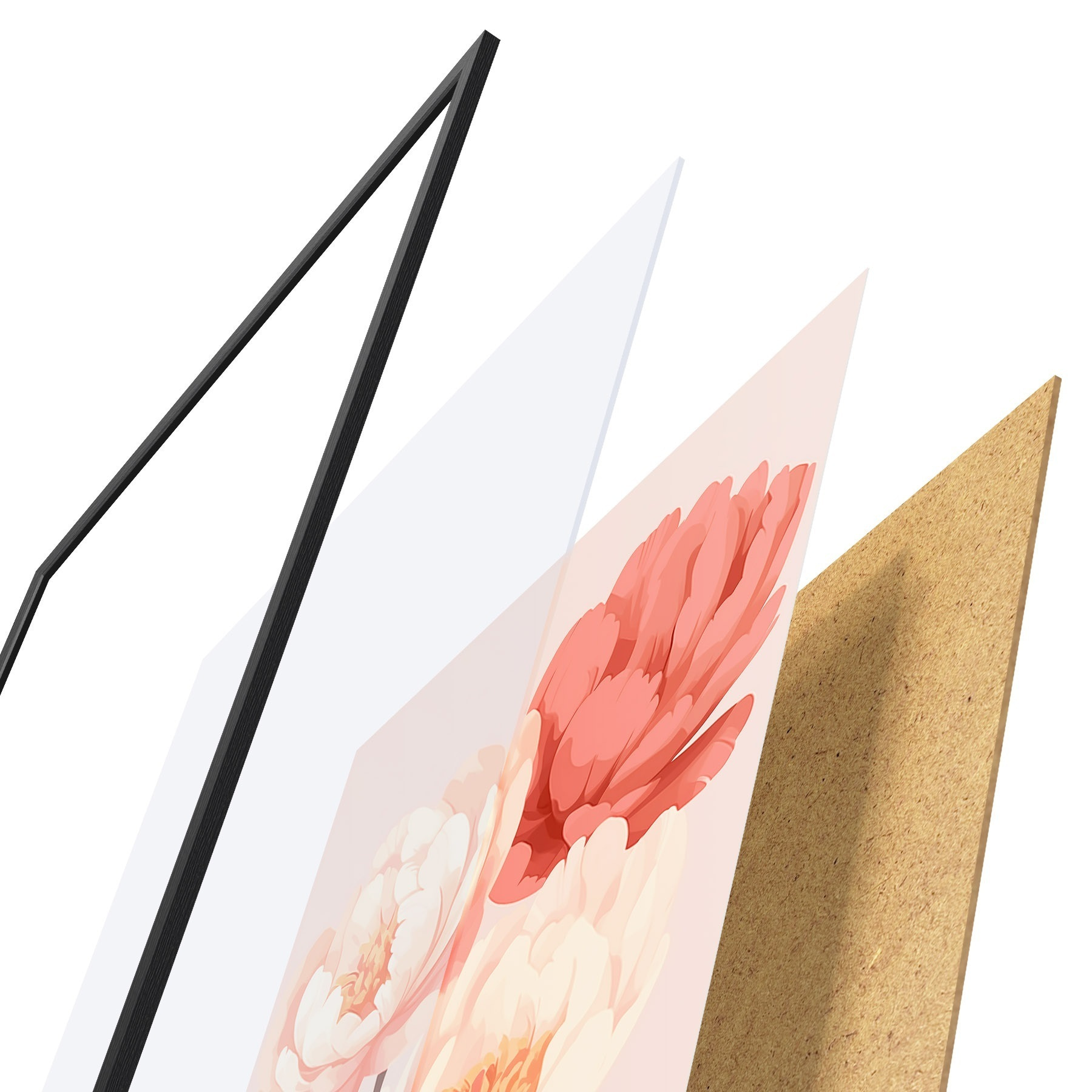 L’affiche encadrée est composée d’un cadre, d’un plexiglas, d’une image imprimée et d’un support en aggloméré. Elle est prête à être accrochée au mur grâce aux fixations situées à l’arrière.