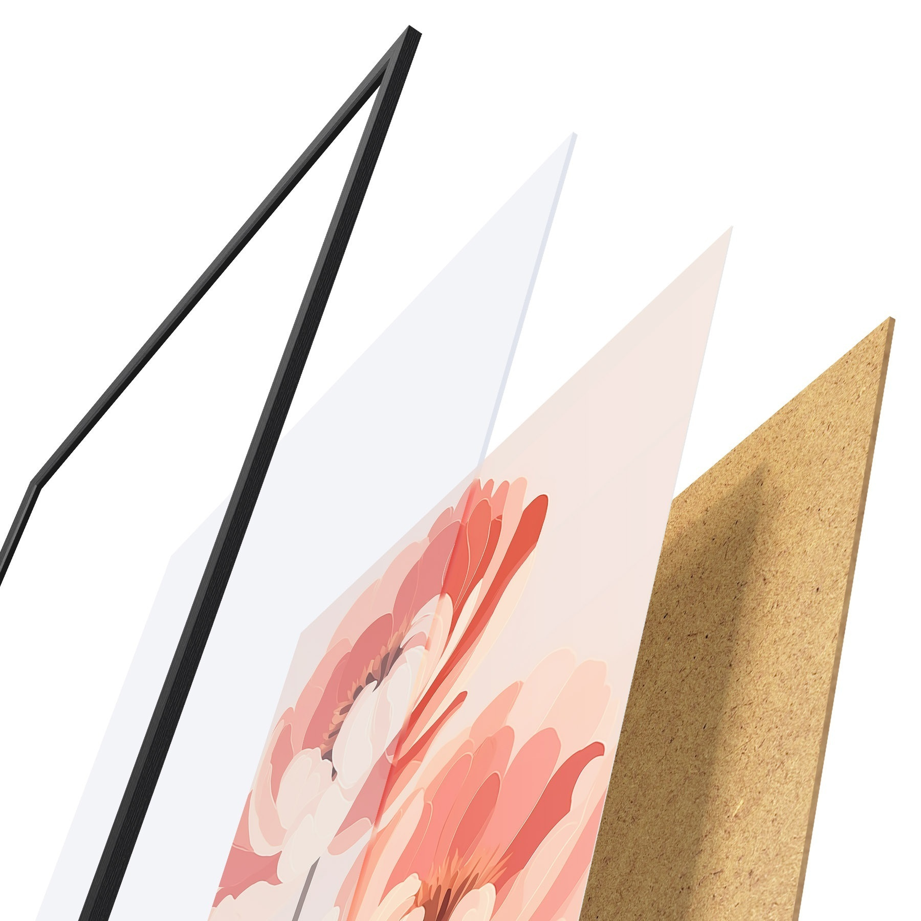 L’affiche encadrée est composée d’un cadre, d’un plexiglas, d’une image imprimée et d’un support en aggloméré. Elle est prête à être accrochée au mur grâce aux fixations situées à l’arrière.
