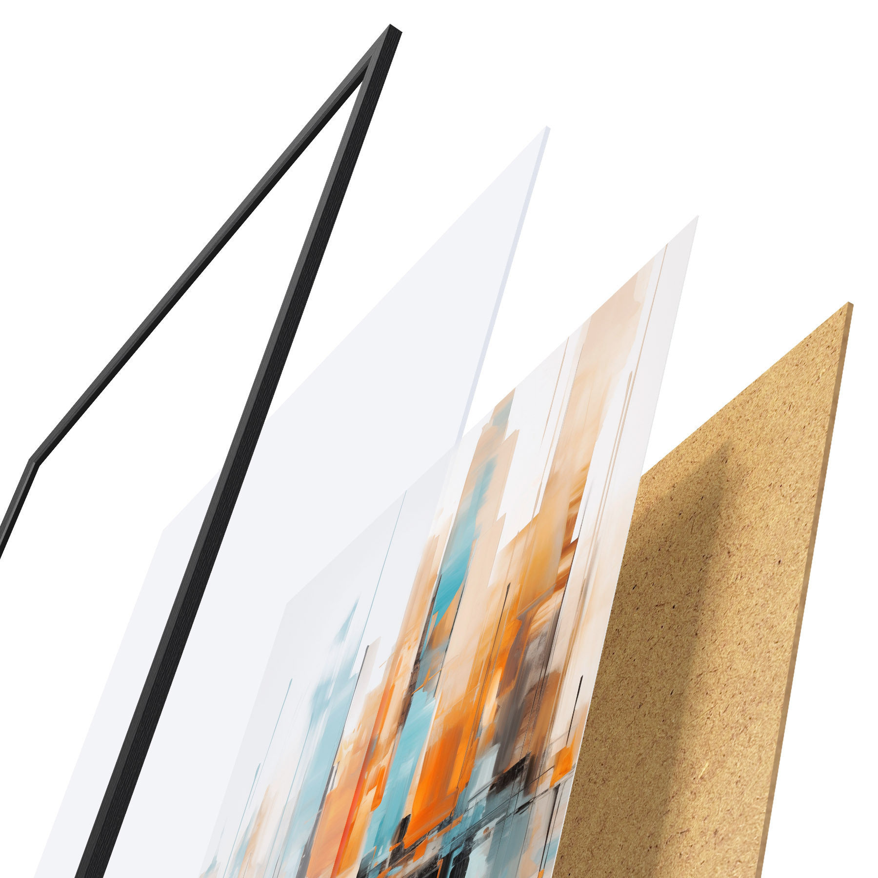 L’affiche encadrée est composée d’un cadre, d’un plexiglas, d’une image imprimée et d’un support en aggloméré. Elle est prête à être accrochée au mur grâce aux fixations situées à l’arrière.