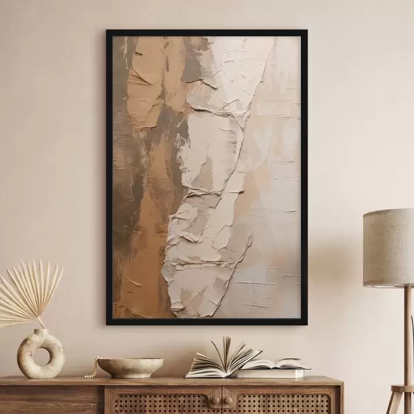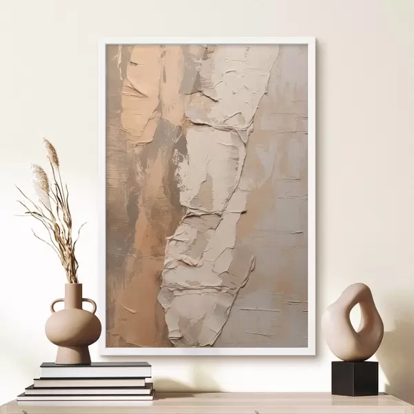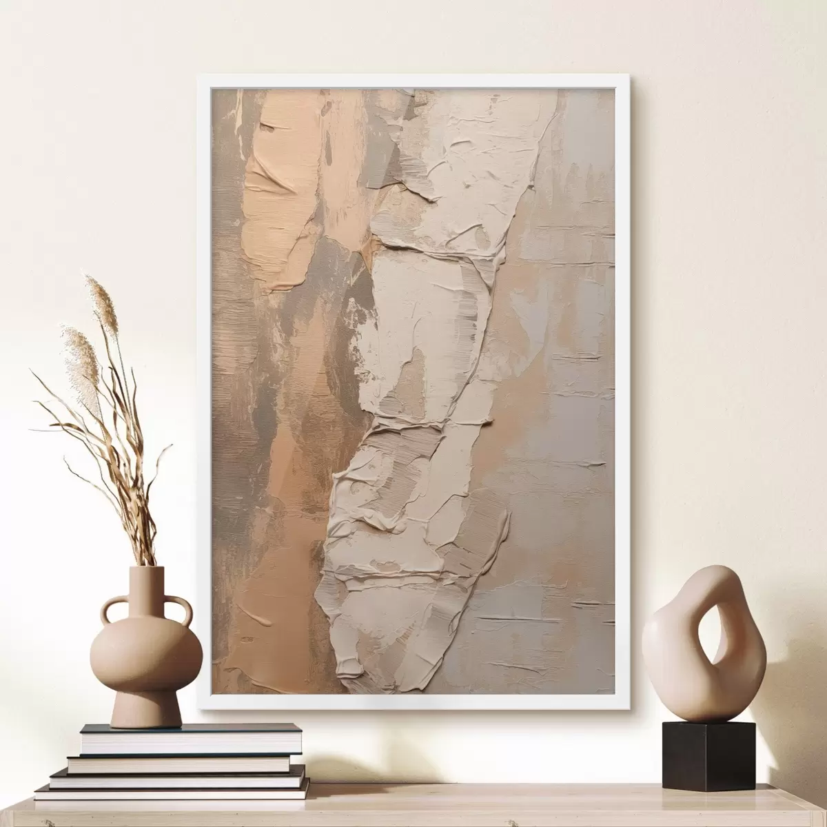 Poster Peinture abstraite aux coups de pinceau épais, tons beiges et bruns, surface texturée, palette de couleurs neutres Nr f46272
