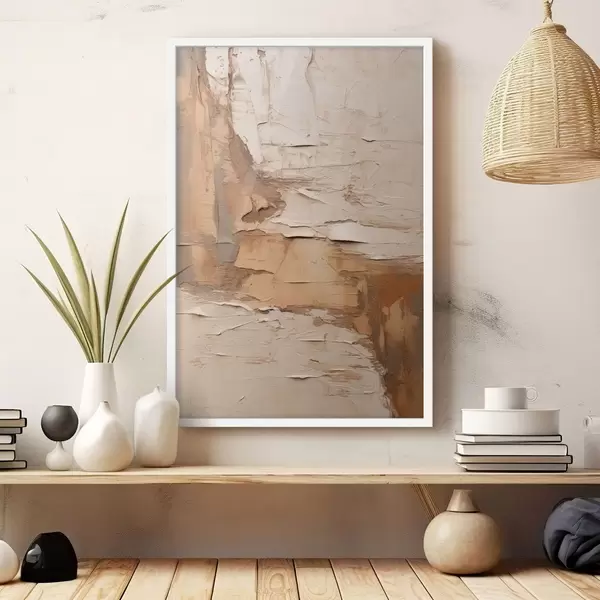 Poster Peinture abstraite aux coups de pinceau épais, tons beiges et bruns, surface texturée, palette de couleurs neutres Nr f46273
