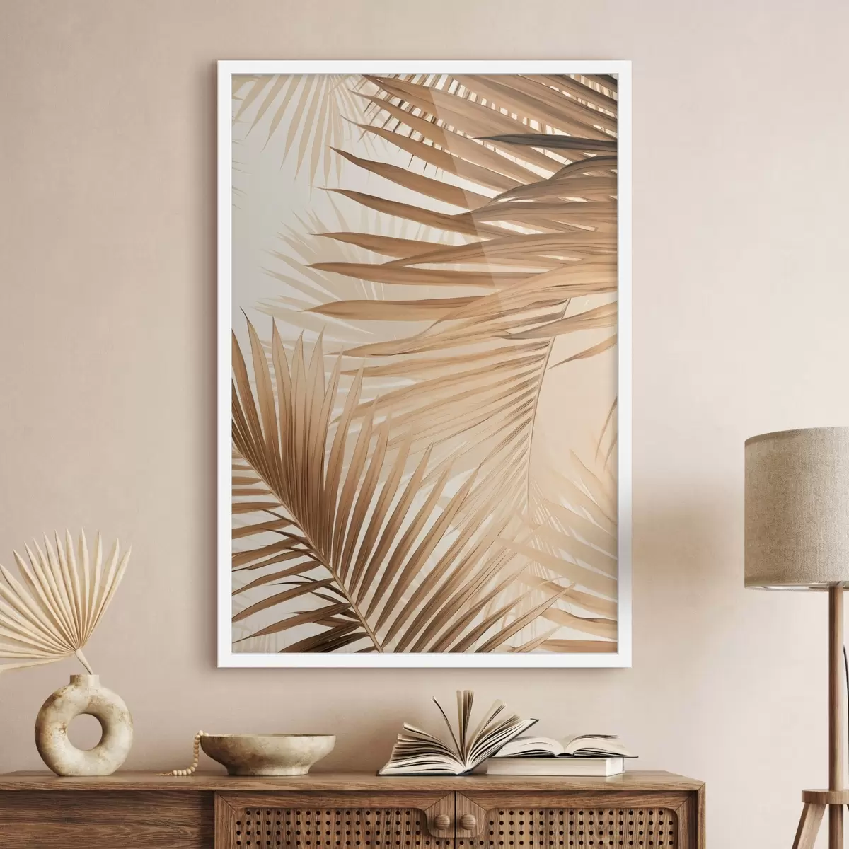 Poster Feuilles de palmier abstraites dans des tons bruns, tropical, botanique, nature, minimaliste, élégant, design moderne f46275