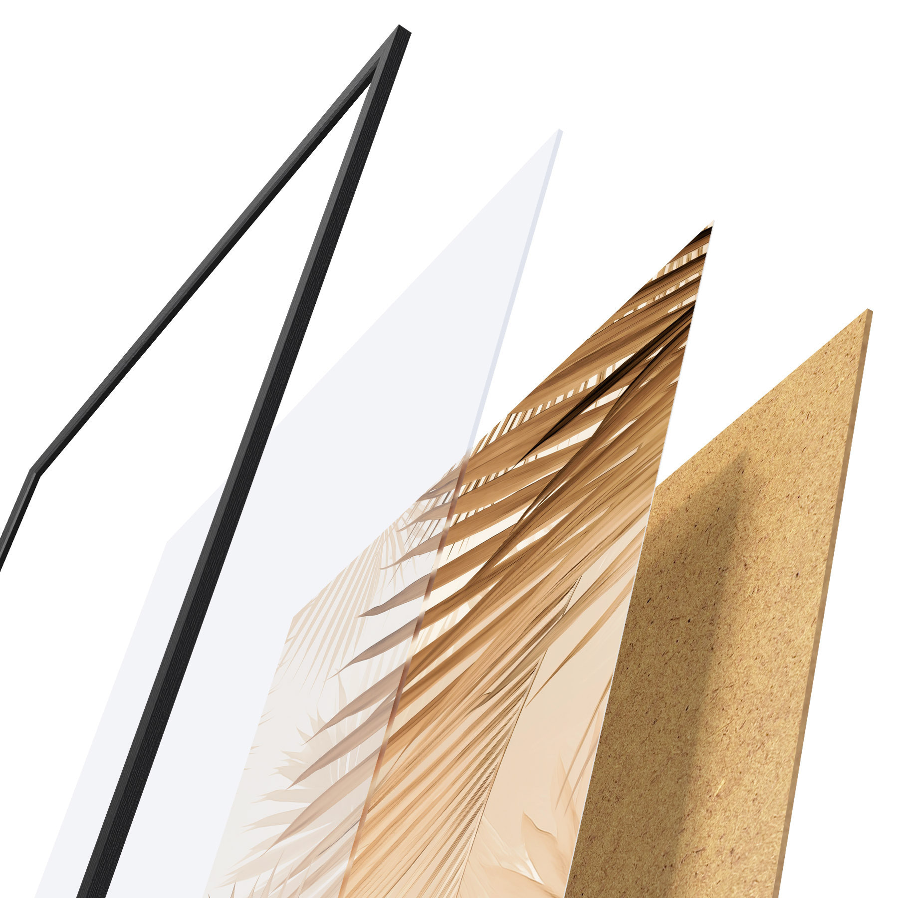 L’affiche encadrée est composée d’un cadre, d’un plexiglas, d’une image imprimée et d’un support en aggloméré. Elle est prête à être accrochée au mur grâce aux fixations situées à l’arrière.
