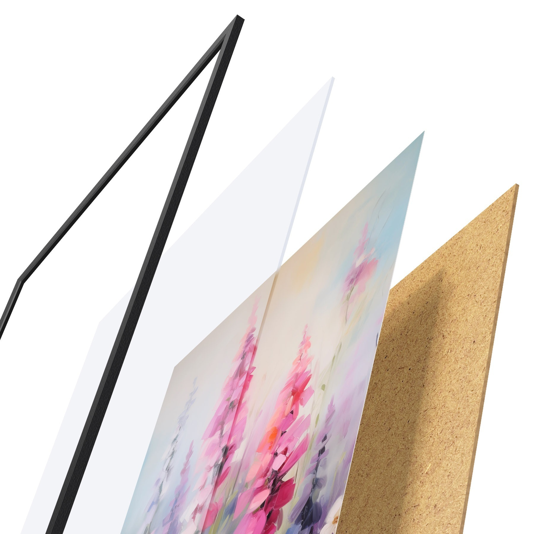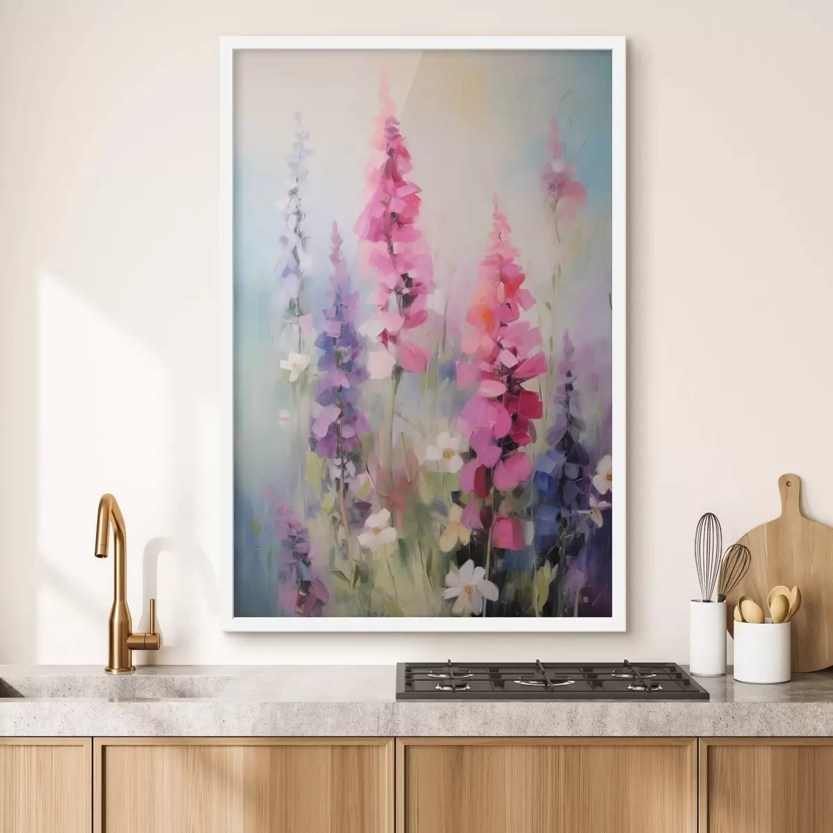 Poster Fleurs roses et violettes avec des marguerites blanches dans un champ, coups de pinceau doux, couleurs pastel, style impressionniste Nr f46279
