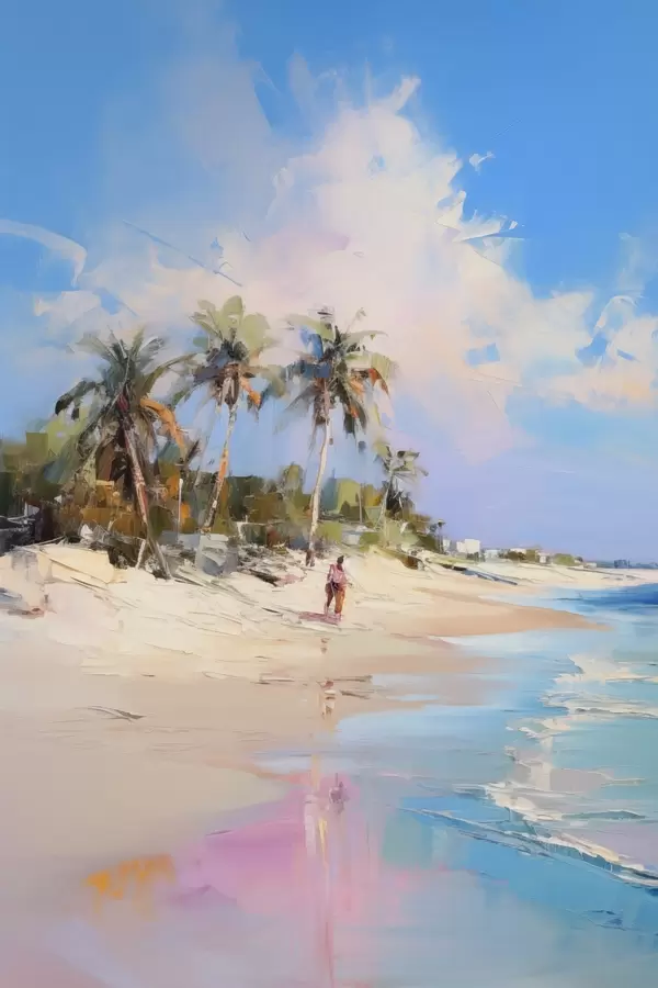 Poster Paysage abstrait, une plage avec des palmiers, une journée ensoleillée avec un ciel bleu et quelques nuages f46284
