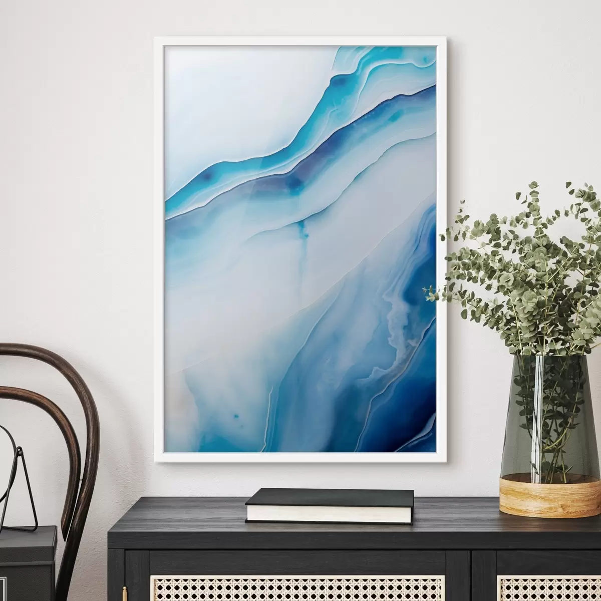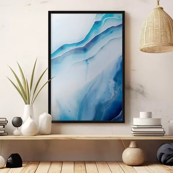 Poster Imprimé abstrait bleu et blanc agate, lignes tourbillonnantes et dégradés, texture lisse, art moderne, minimaliste Nr f46291
