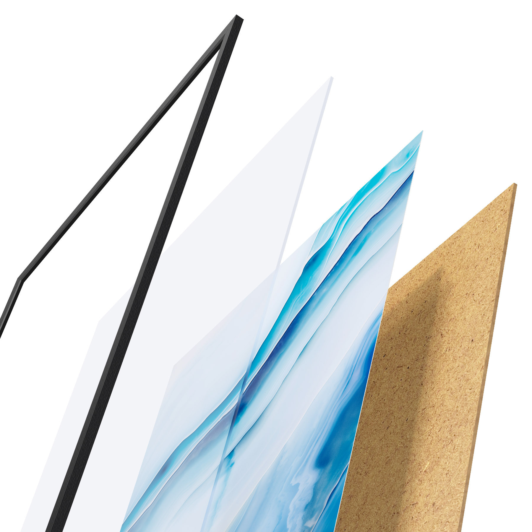 L’affiche encadrée est composée d’un cadre, d’un plexiglas, d’une image imprimée et d’un support en aggloméré. Elle est prête à être accrochée au mur grâce aux fixations situées à l’arrière.