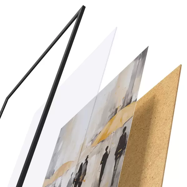 L’affiche encadrée est composée d’un cadre, d’un plexiglas, d’une image imprimée et d’un support en aggloméré. Elle est prête à être accrochée au mur grâce aux fixations situées à l’arrière.