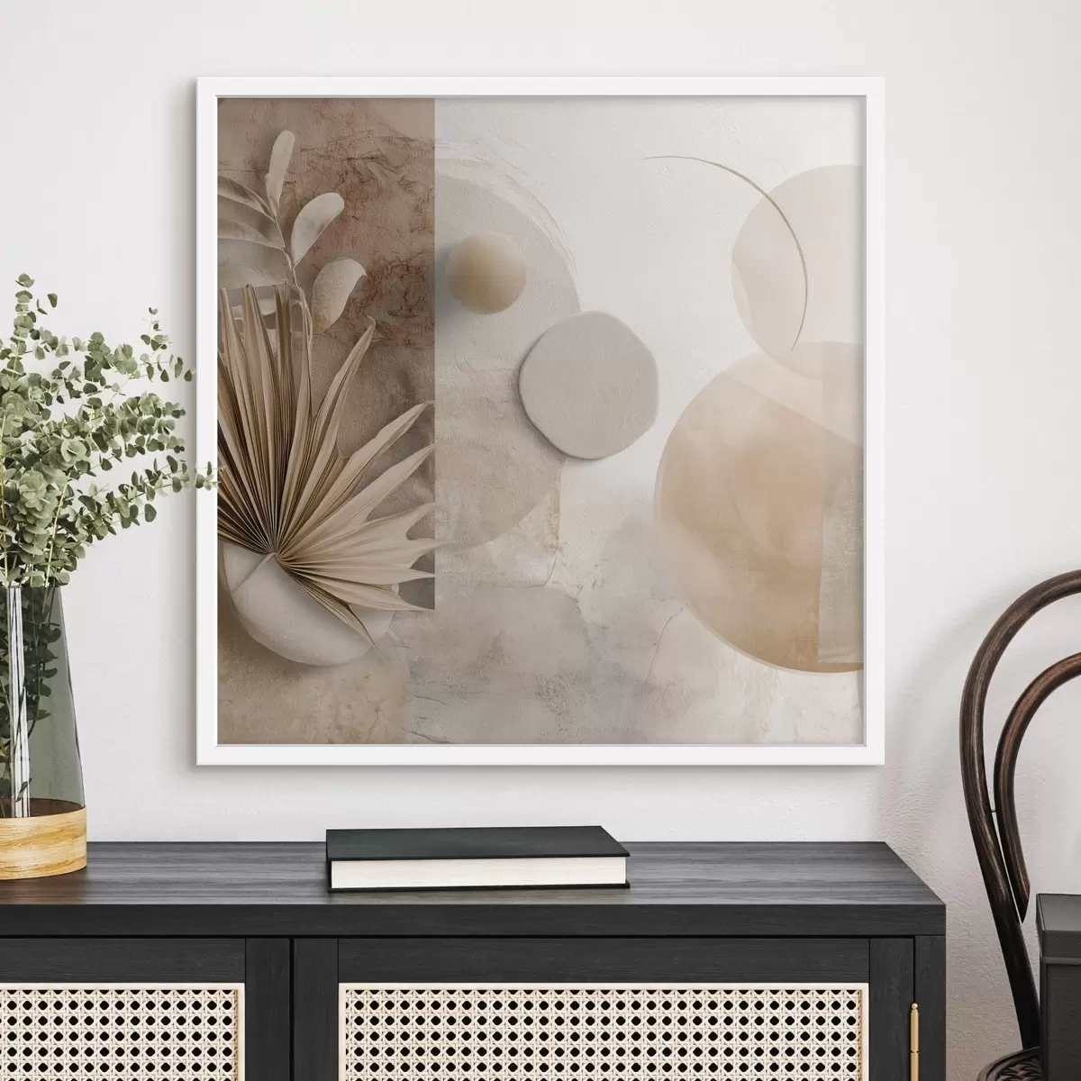Poster Feuilles de palmier séchées et cercles 3D dans les tons beiges Nr f46310