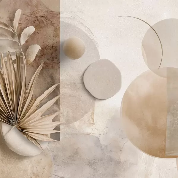 Poster Feuilles de palmier séchées et cercles 3D dans les tons beiges Nr f46310