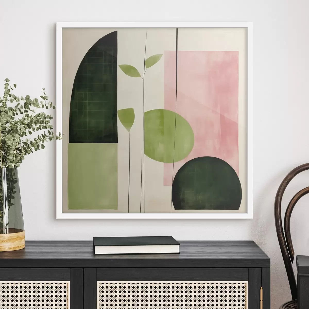 Poster Style minimaliste moderne avec des blocs roses et verts Nr f46312