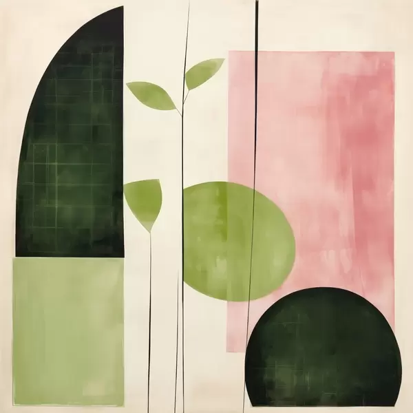 Poster Style minimaliste moderne avec des blocs roses et verts Nr f46312