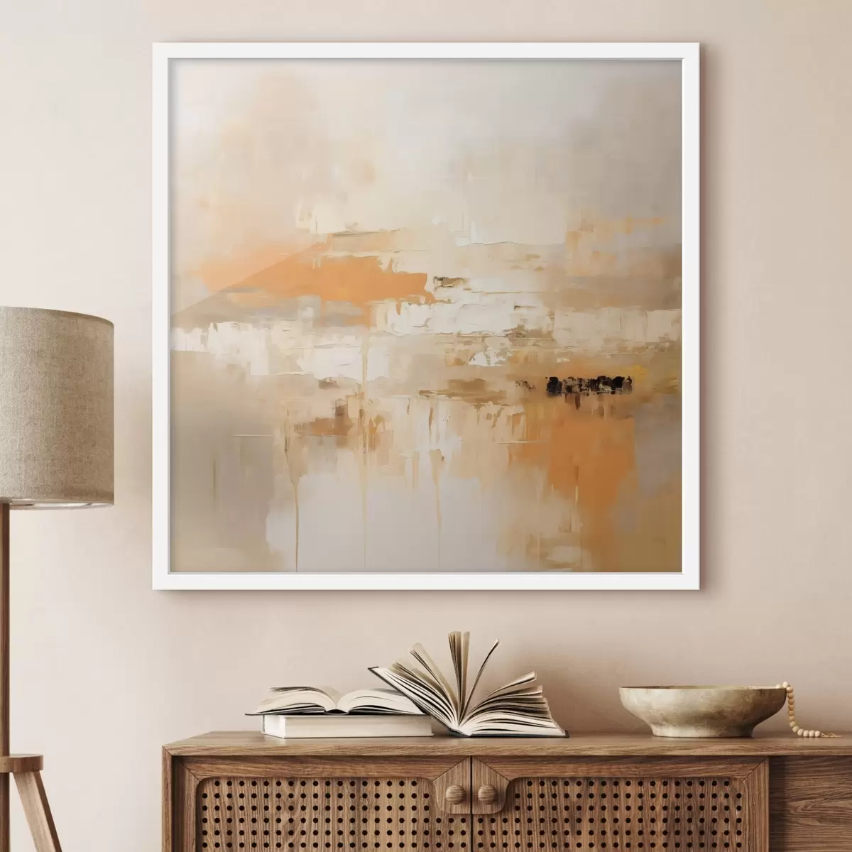 Poster Abstraction paysagère dans un style huileux avec des tons orange et beige f46314