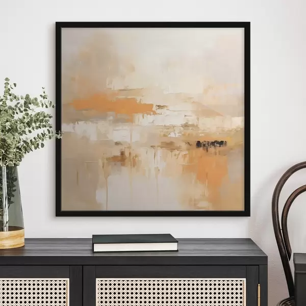 Poster Abstraction paysagère dans un style huileux avec des tons orange et beige Nr f46314