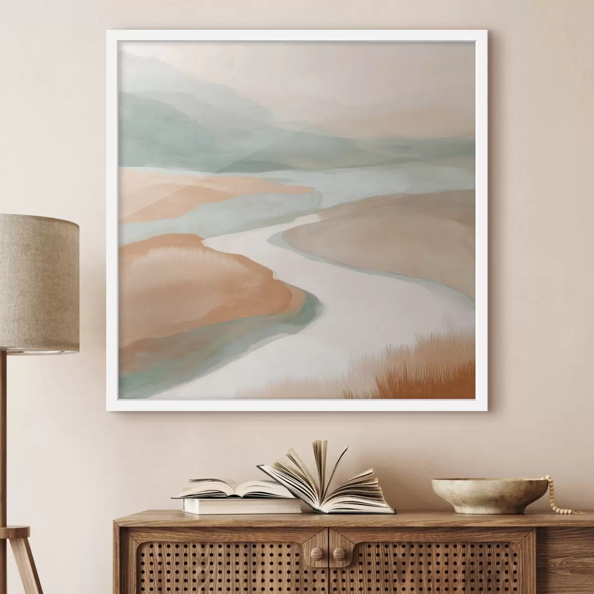 Poster Paysage abstrait avec une rivière orange et verte Nr f46316