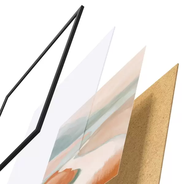 L’affiche encadrée est composée d’un cadre, d’un plexiglas, d’une image imprimée et d’un support en aggloméré. Elle est prête à être accrochée au mur grâce aux fixations situées à l’arrière.