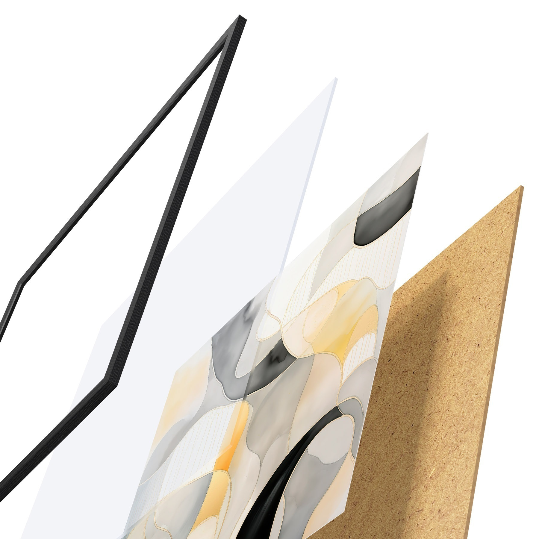L’affiche encadrée est composée d’un cadre, d’un plexiglas, d’une image imprimée et d’un support en aggloméré. Elle est prête à être accrochée au mur grâce aux fixations situées à l’arrière.