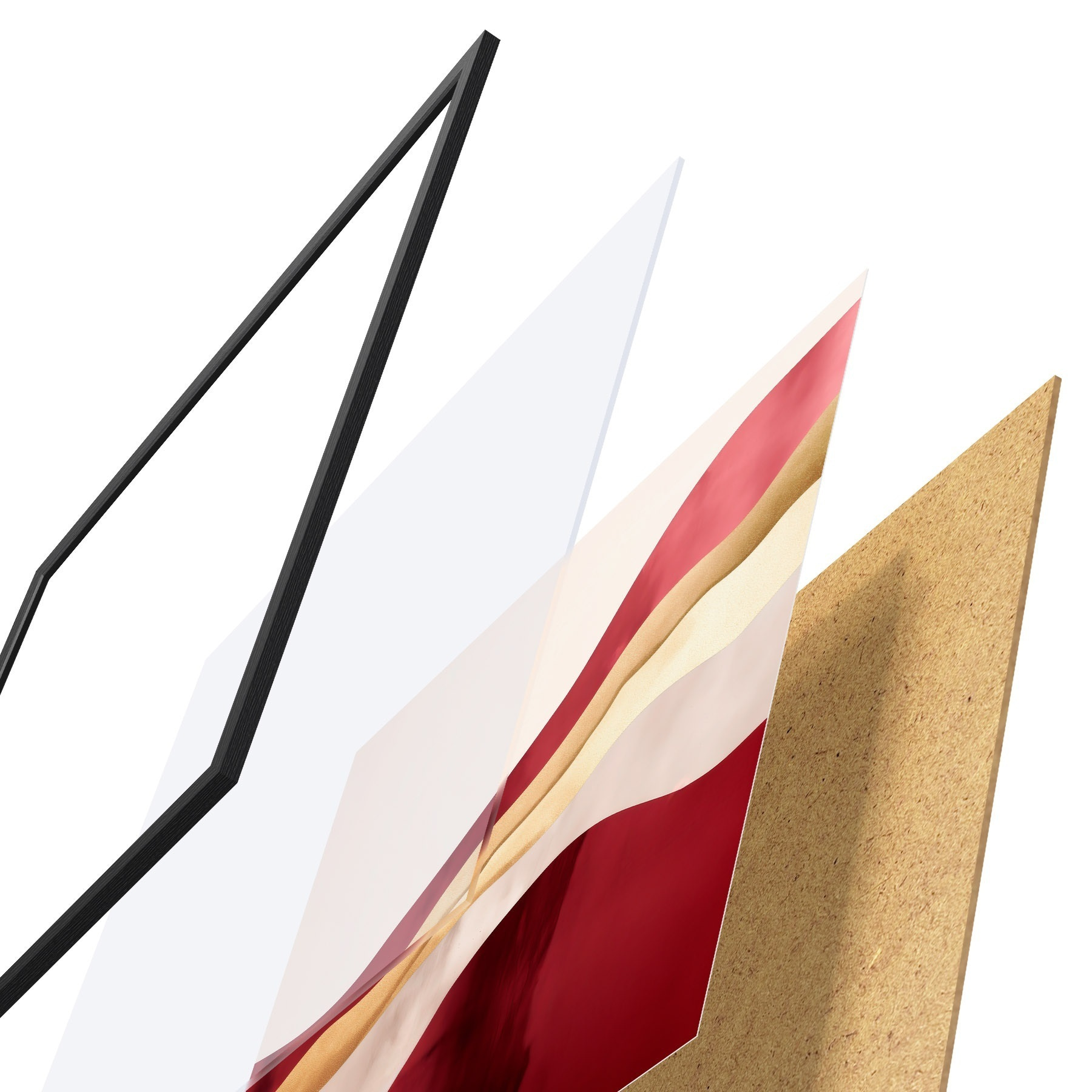 L’affiche encadrée est composée d’un cadre, d’un plexiglas, d’une image imprimée et d’un support en aggloméré. Elle est prête à être accrochée au mur grâce aux fixations situées à l’arrière.