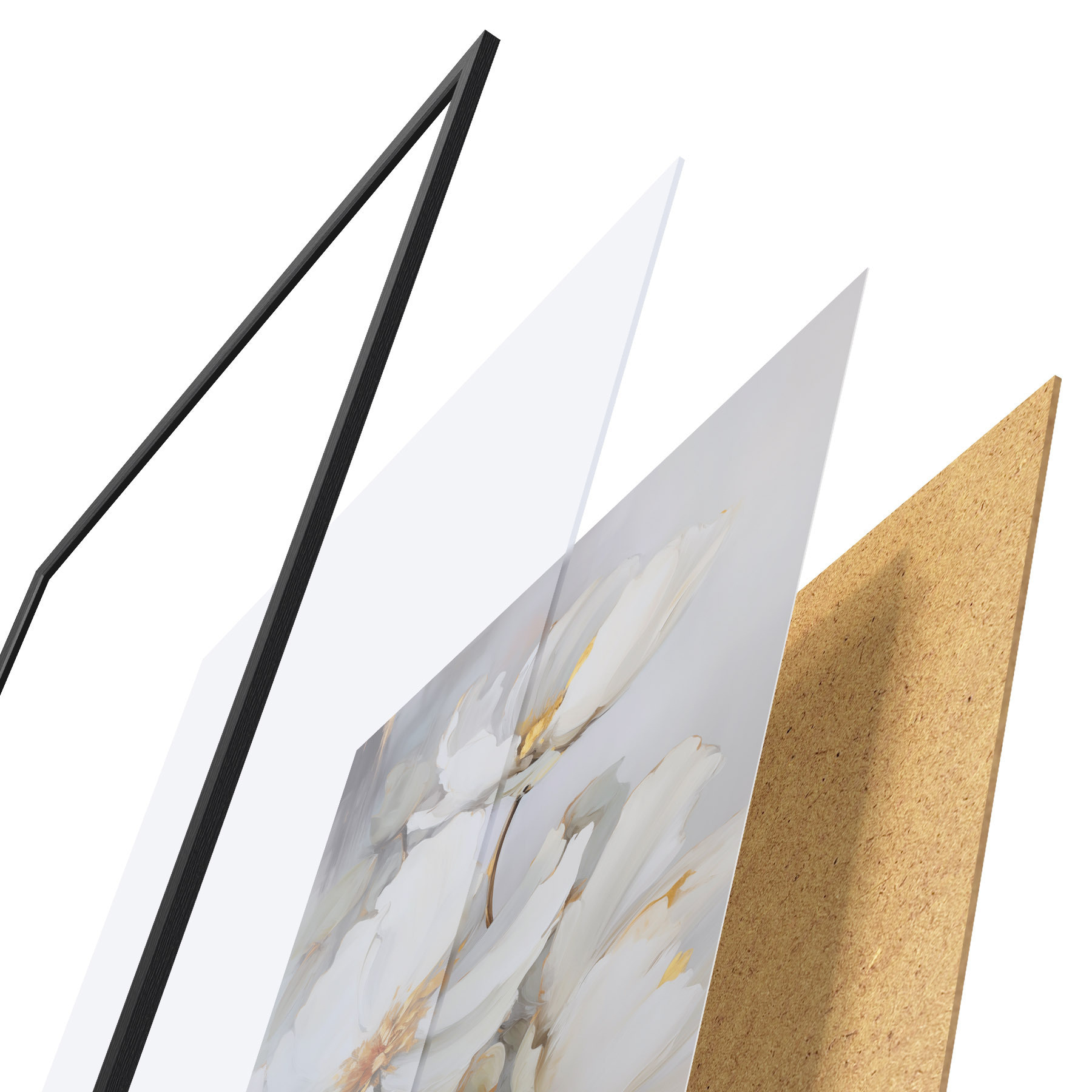 L’affiche encadrée est composée d’un cadre, d’un plexiglas, d’une image imprimée et d’un support en aggloméré. Elle est prête à être accrochée au mur grâce aux fixations situées à l’arrière.