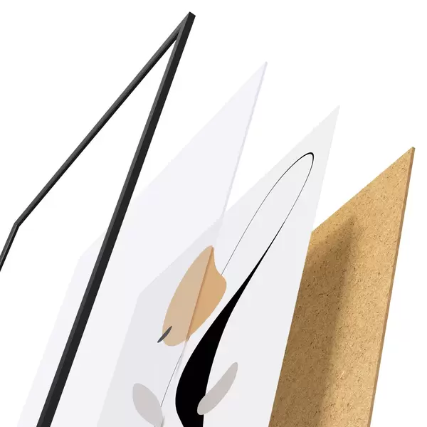 L’affiche encadrée est composée d’un cadre, d’un plexiglas, d’une image imprimée et d’un support en aggloméré. Elle est prête à être accrochée au mur grâce aux fixations situées à l’arrière.