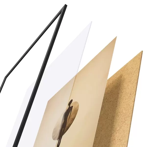 L’affiche encadrée est composée d’un cadre, d’un plexiglas, d’une image imprimée et d’un support en aggloméré. Elle est prête à être accrochée au mur grâce aux fixations situées à l’arrière.