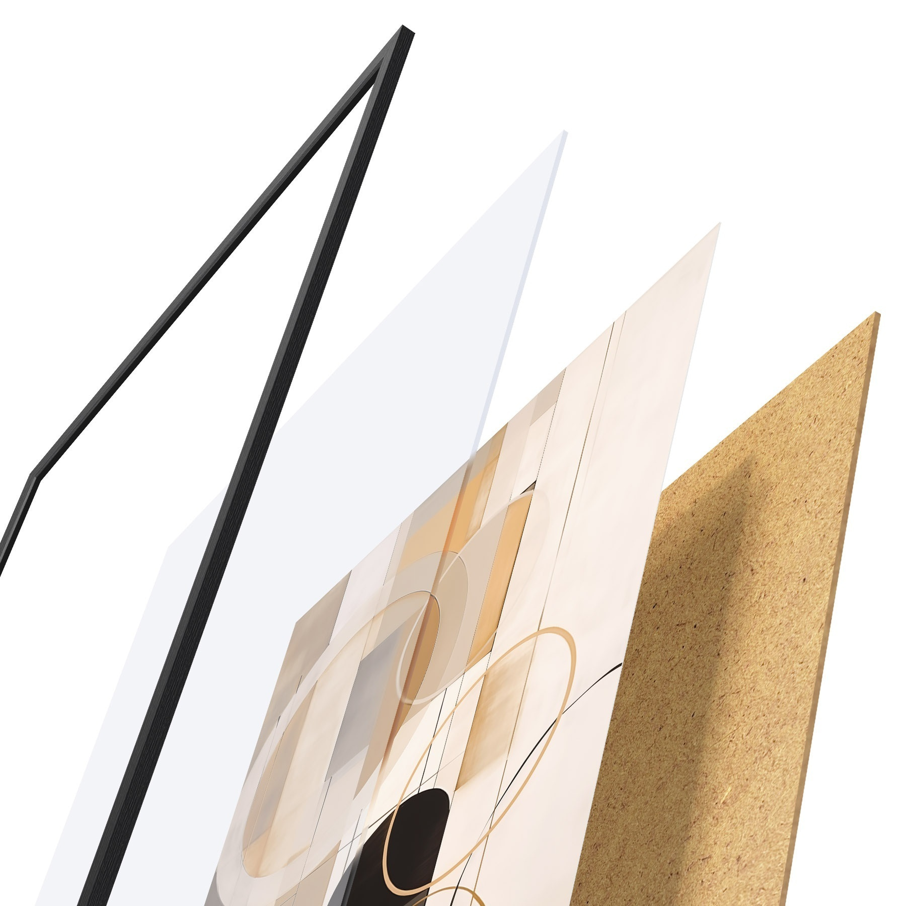 L’affiche encadrée est composée d’un cadre, d’un plexiglas, d’une image imprimée et d’un support en aggloméré. Elle est prête à être accrochée au mur grâce aux fixations situées à l’arrière.