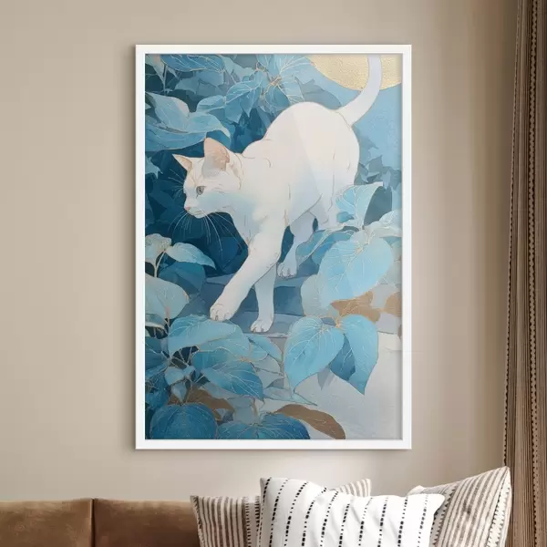 Poster Chat parmi les feuilles f46362