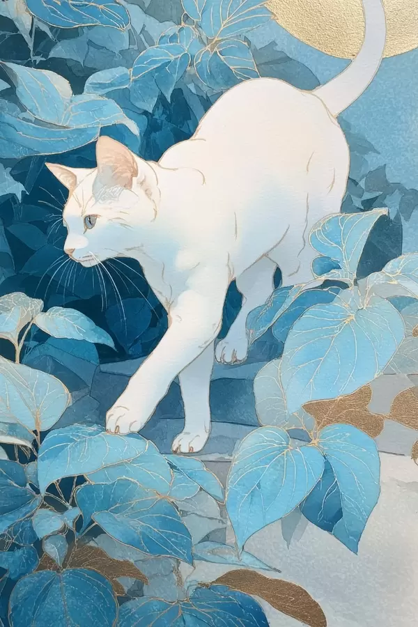 Poster Chat parmi les feuilles f46362