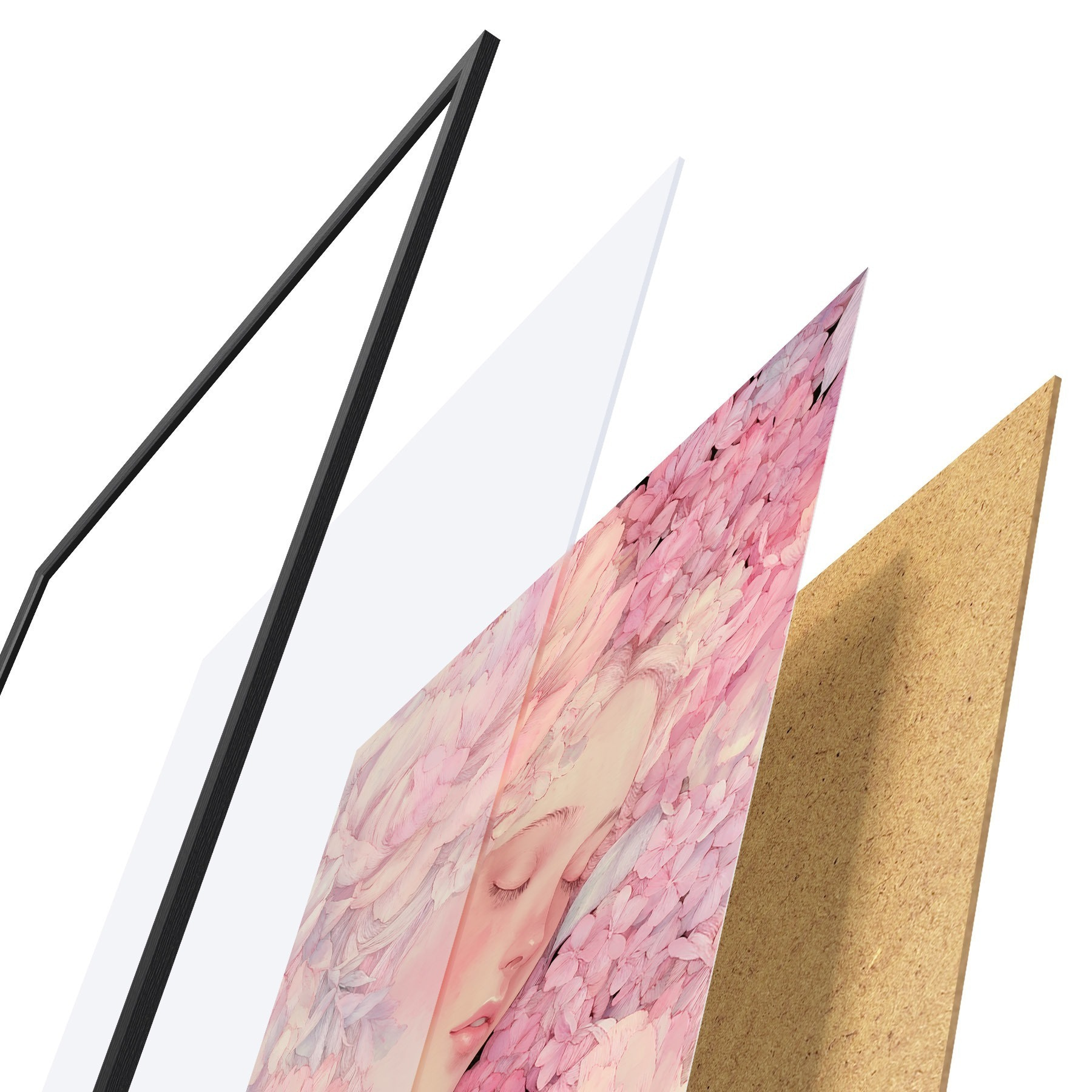 L’affiche encadrée est composée d’un cadre, d’un plexiglas, d’une image imprimée et d’un support en aggloméré. Elle est prête à être accrochée au mur grâce aux fixations situées à l’arrière.