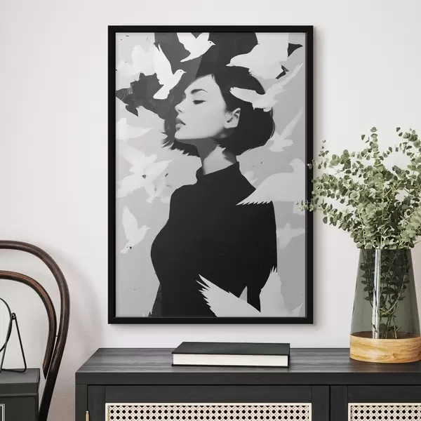 Poster Fille avec des oiseaux Nr f46369