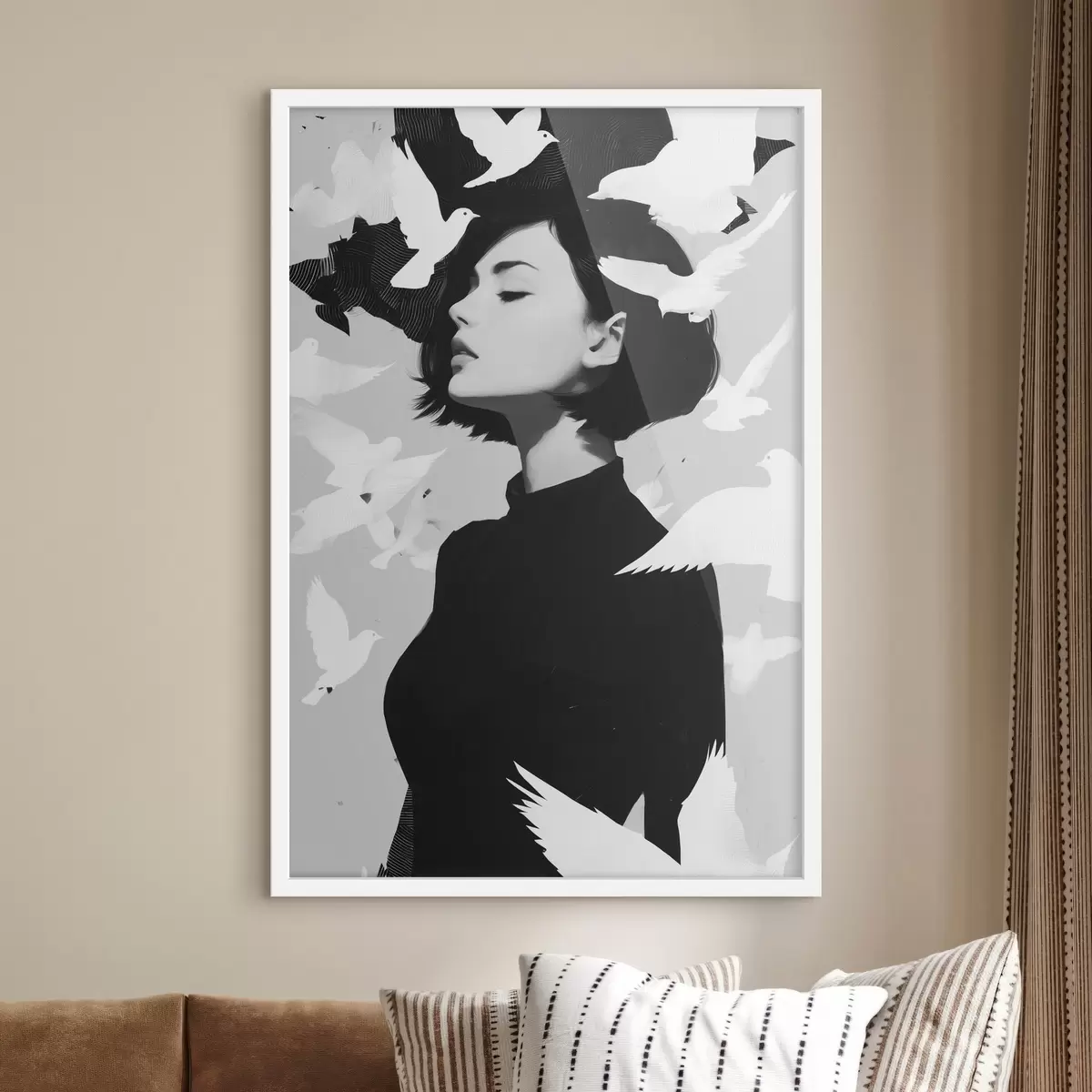 Poster Fille avec des oiseaux f46369