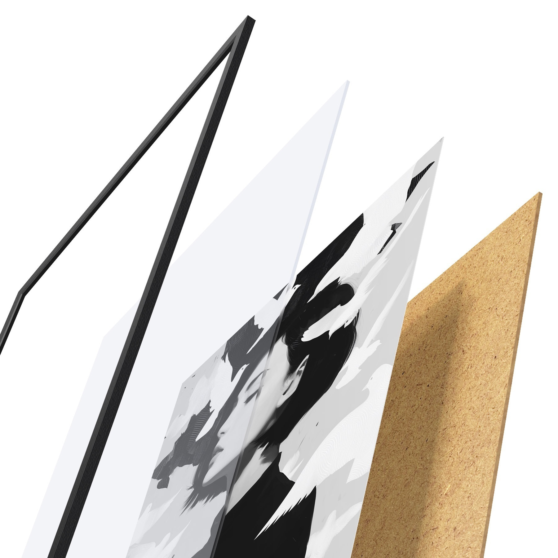 L’affiche encadrée est composée d’un cadre, d’un plexiglas, d’une image imprimée et d’un support en aggloméré. Elle est prête à être accrochée au mur grâce aux fixations situées à l’arrière.