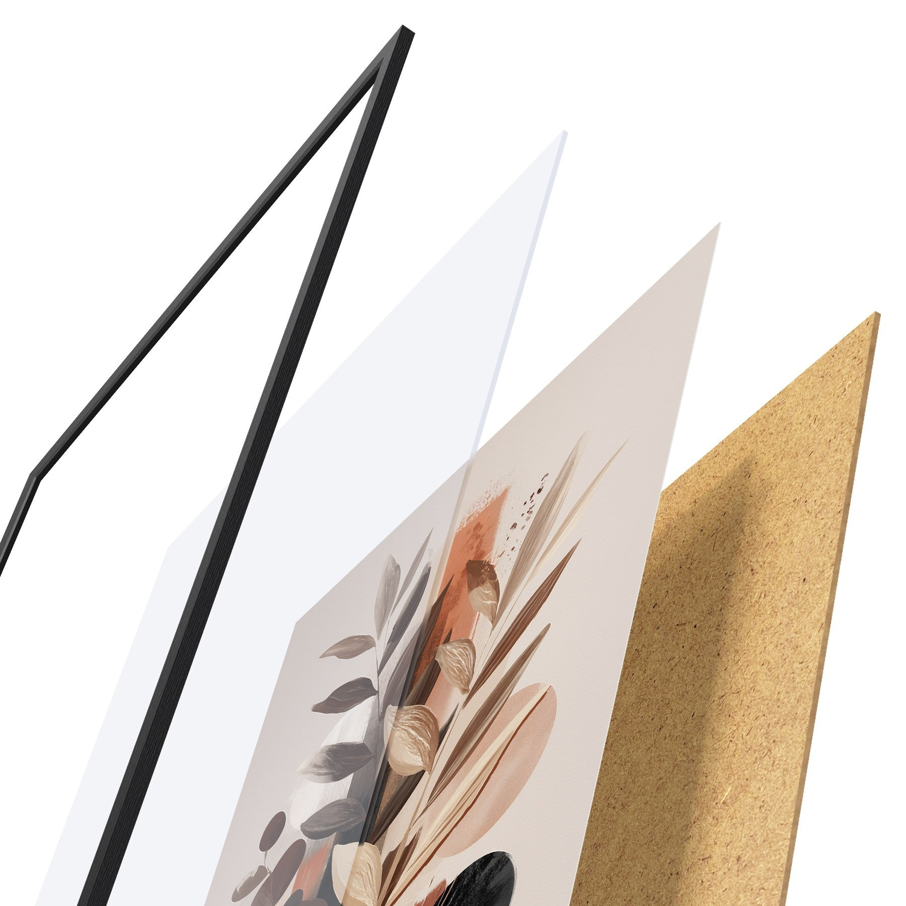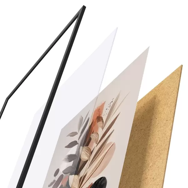L’affiche encadrée est composée d’un cadre, d’un plexiglas, d’une image imprimée et d’un support en aggloméré. Elle est prête à être accrochée au mur grâce aux fixations situées à l’arrière.