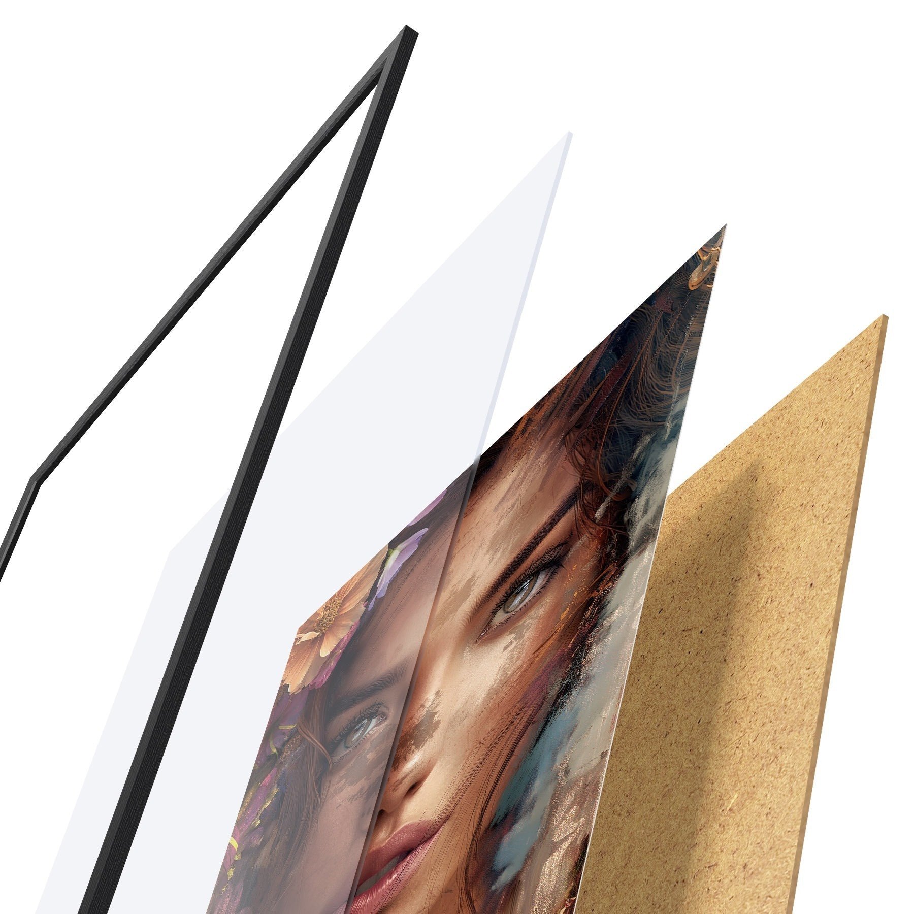 L’affiche encadrée est composée d’un cadre, d’un plexiglas, d’une image imprimée et d’un support en aggloméré. Elle est prête à être accrochée au mur grâce aux fixations situées à l’arrière.